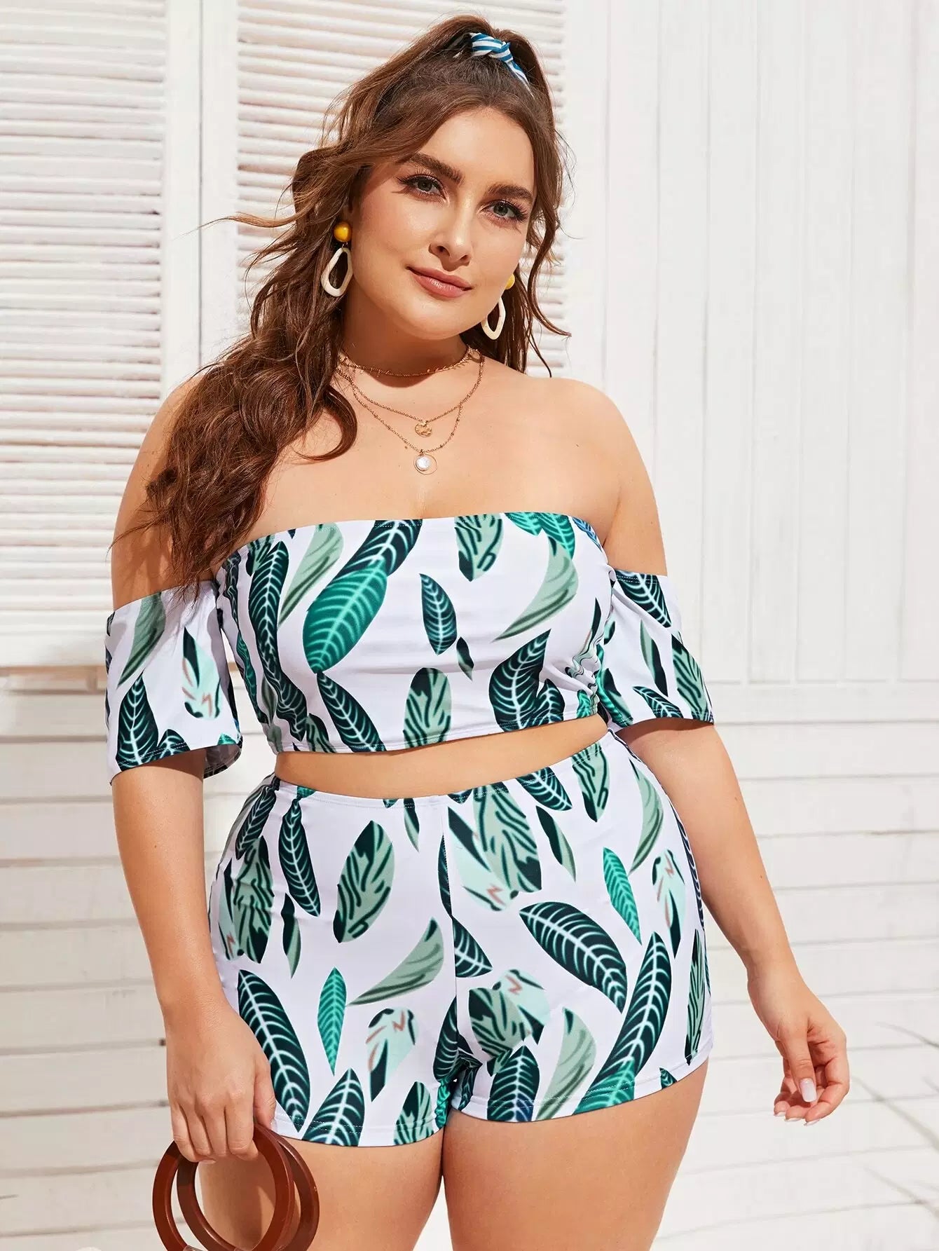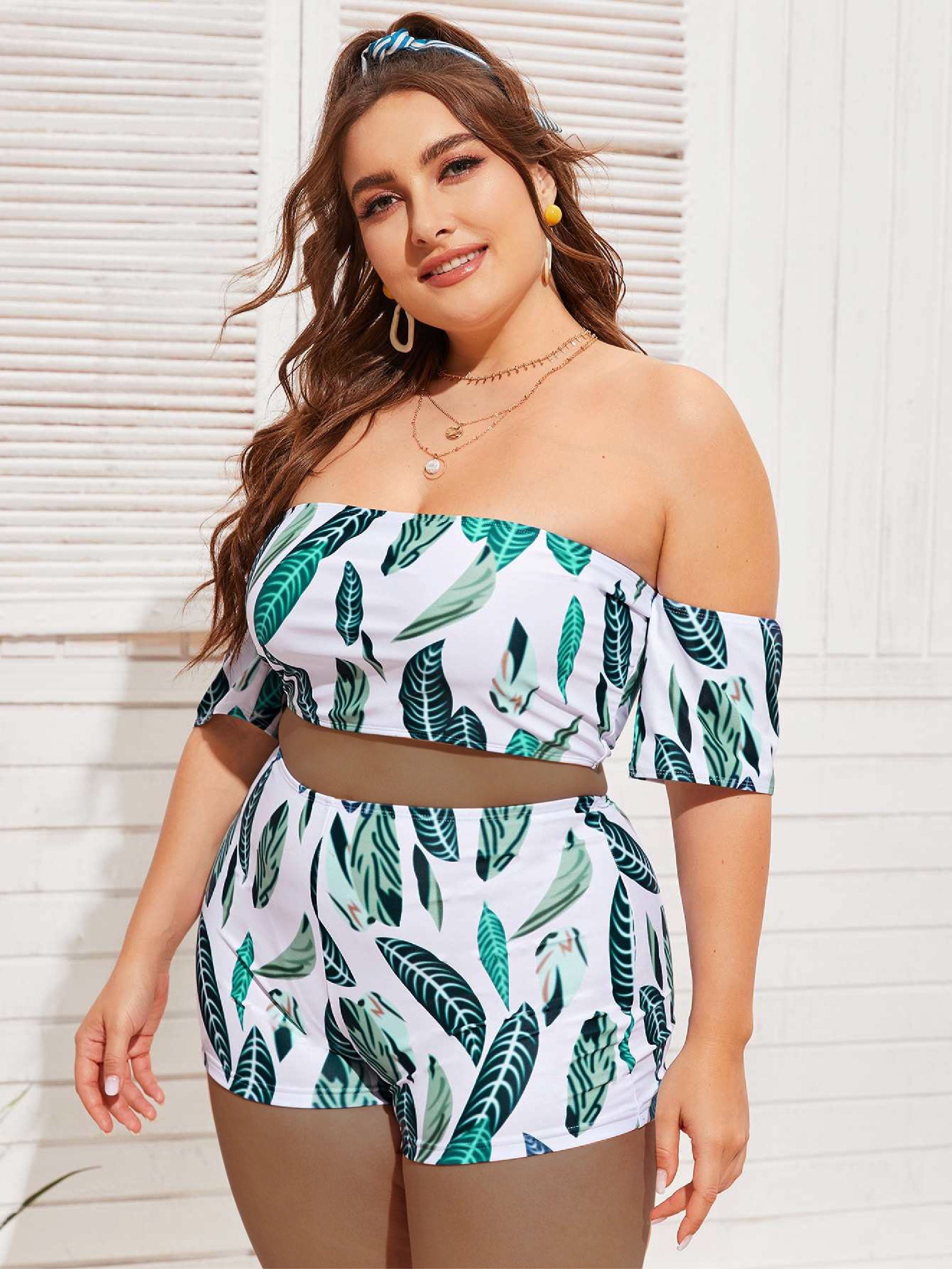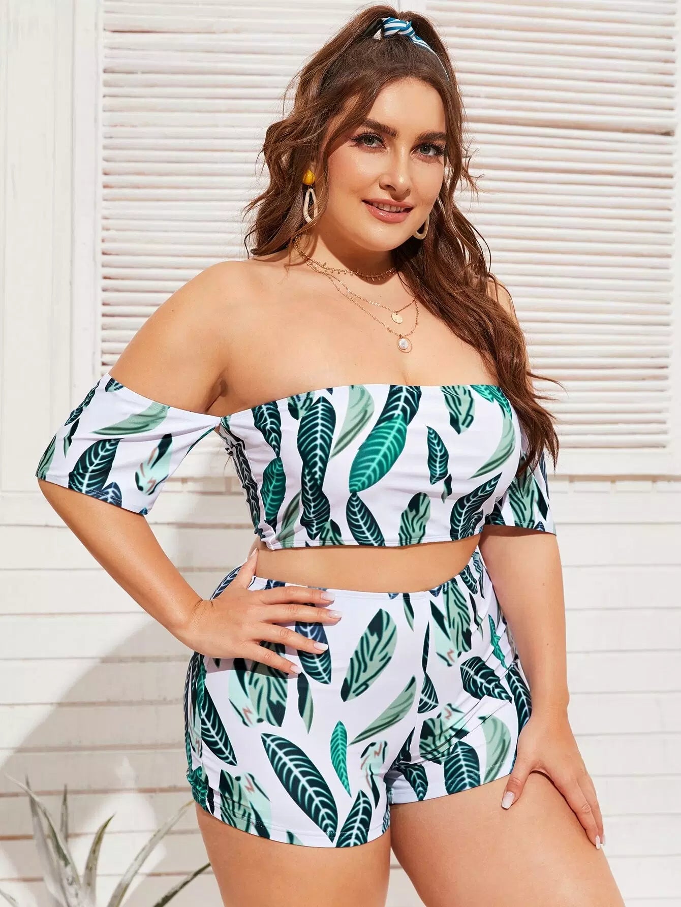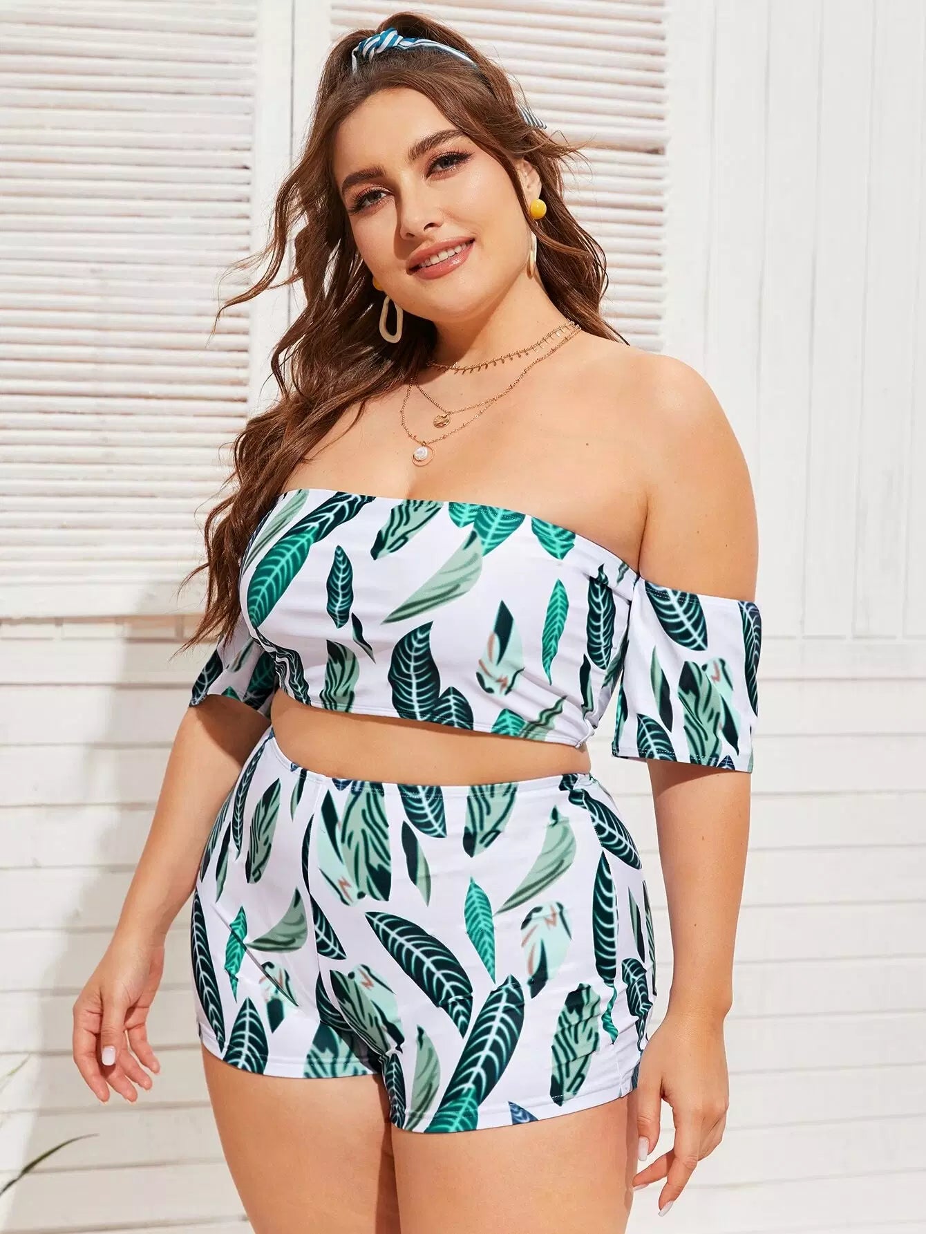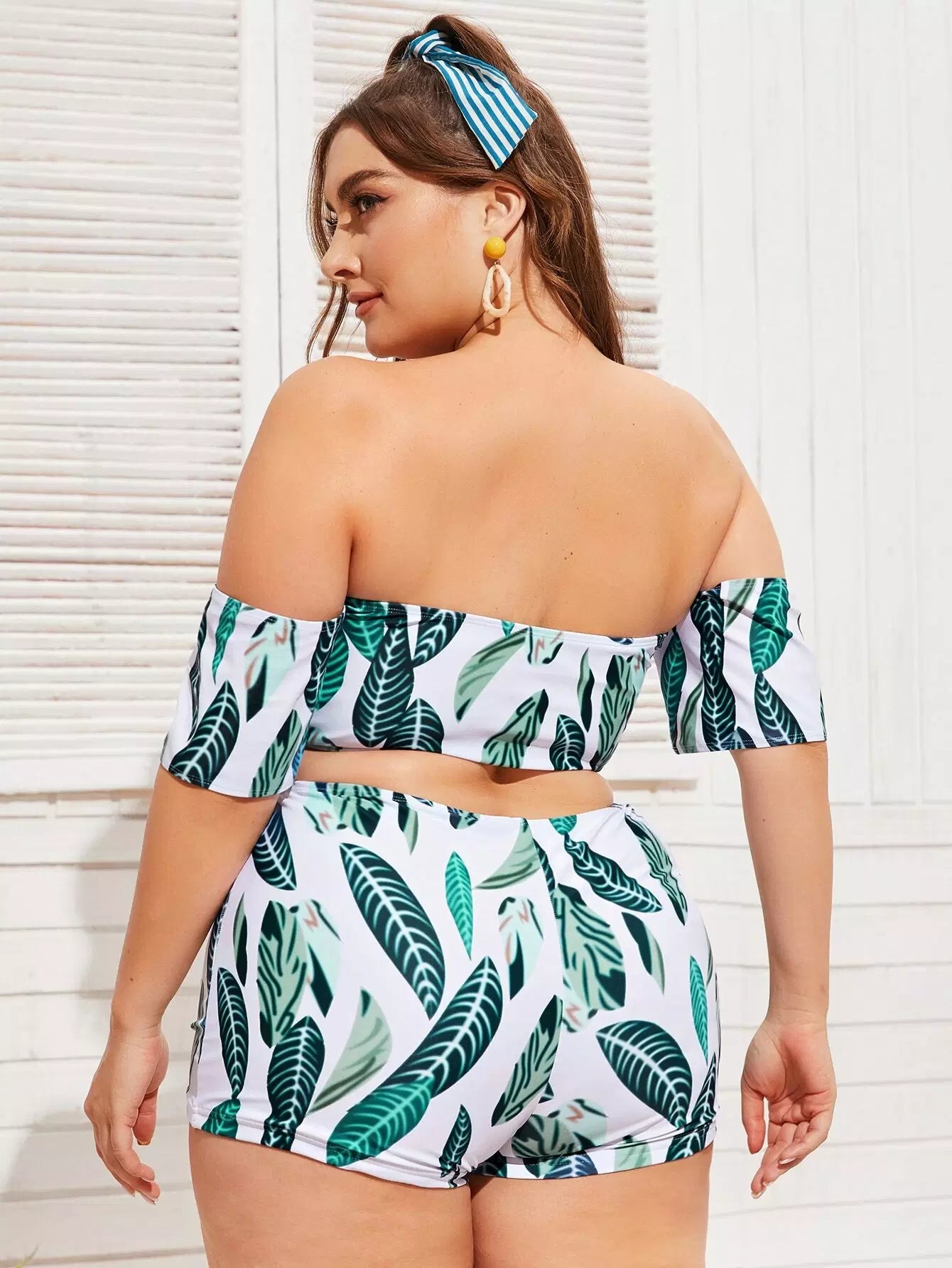 بدلة سباحة بيكيني باردوت استوائي بأكمام قصيرة بلس