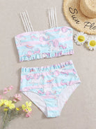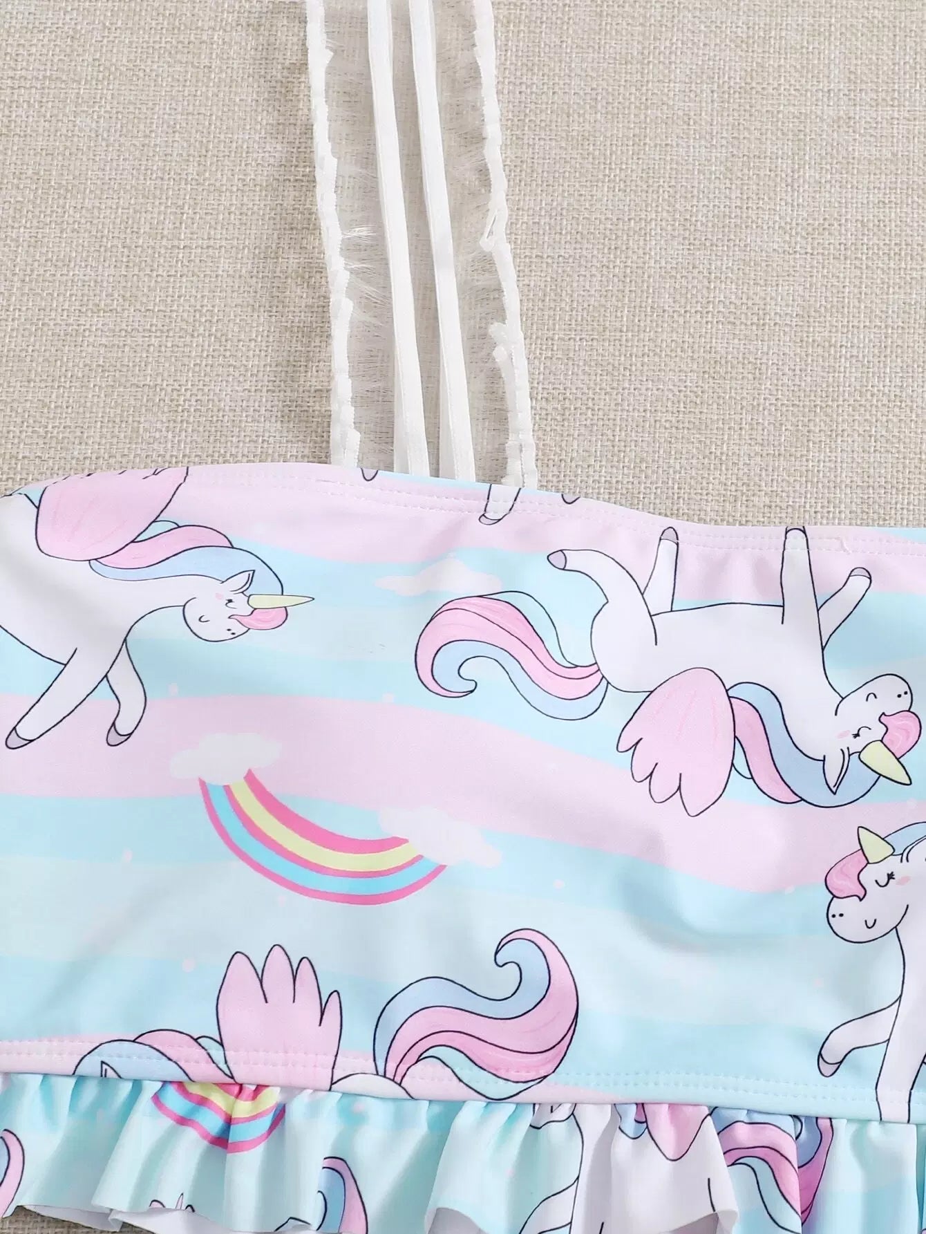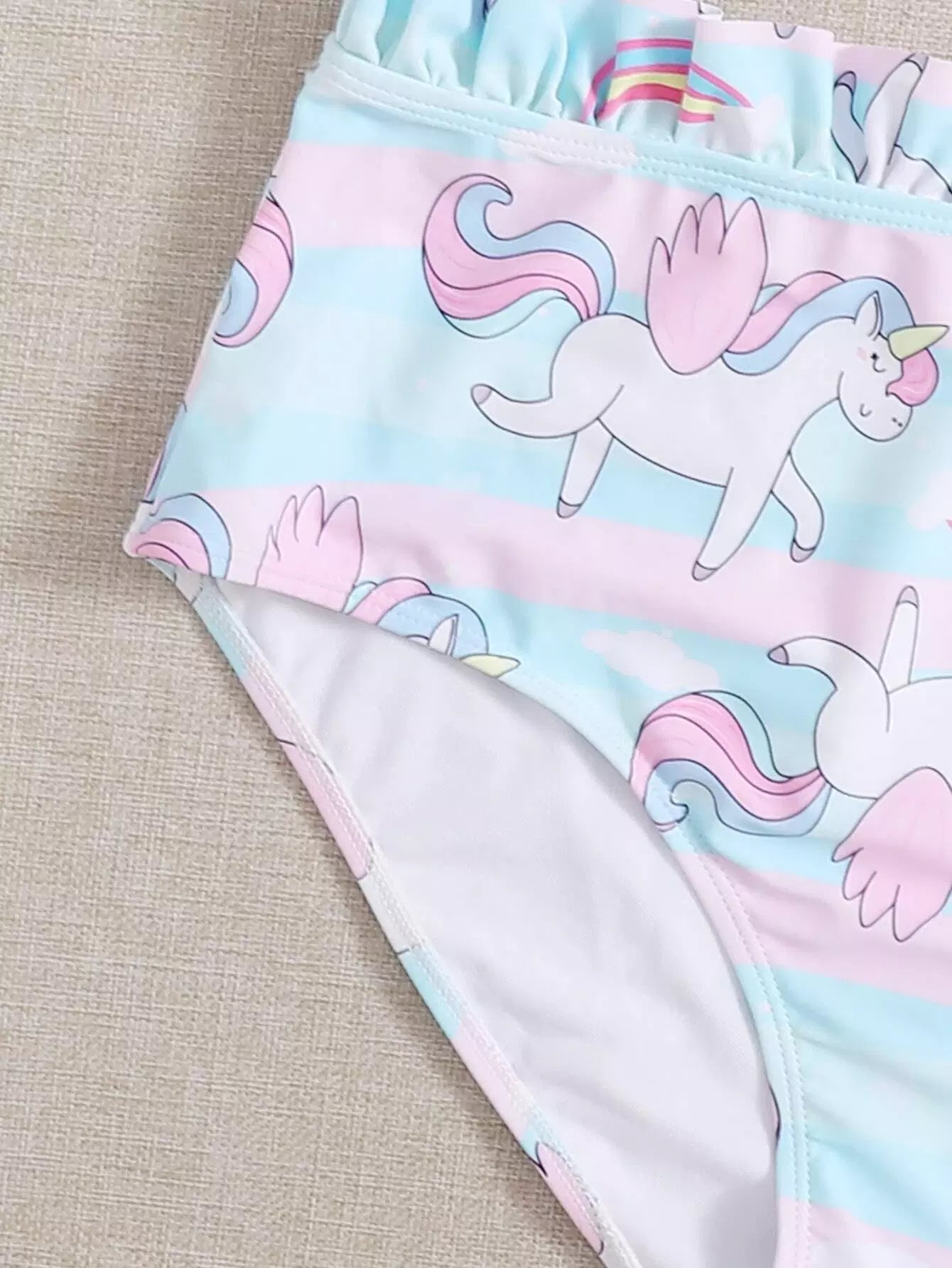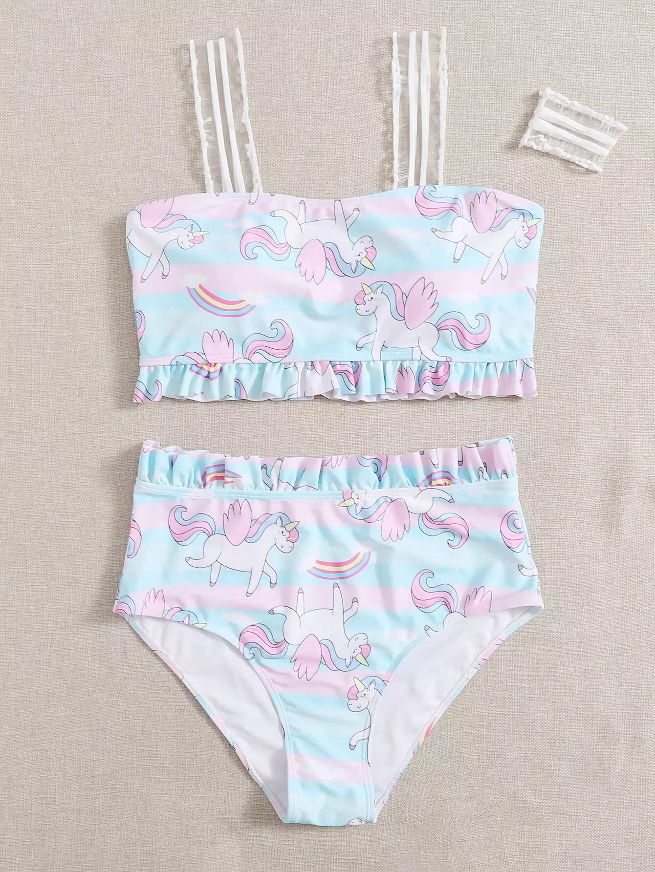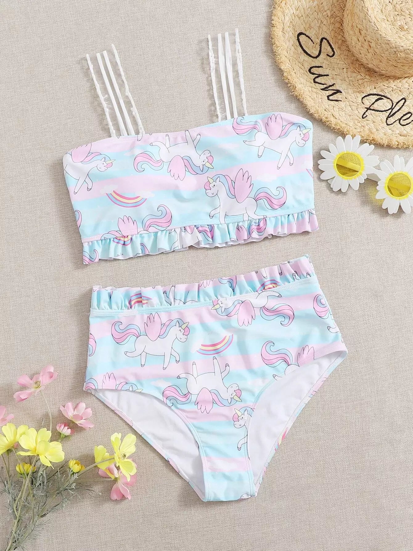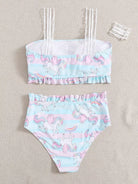 مايوه سباحة بيكيني بطبعة يونيكورن مزين بكشكش زائد