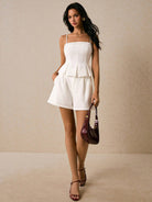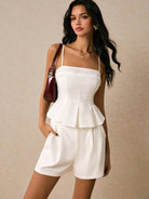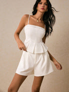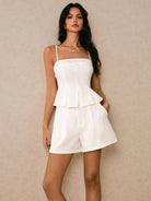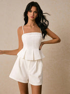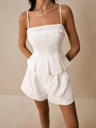 Poelle White Vest Two-Piece Set, Lace Stitching, Fashionable And Elegant,Babydoll Top,Women Two Pieces