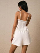طقم صدرية بيضاء من Poelle مكون من قطعتين، مزين بالدانتيل، عصري وأنيق، بلوزة بيبي دول، قطعتين للنساء