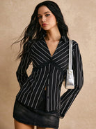 قميص Poï½selle الأنيق ذو الخطوط الملونة المتداخلة بأكمام طويلة وربطة عنق