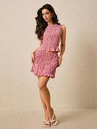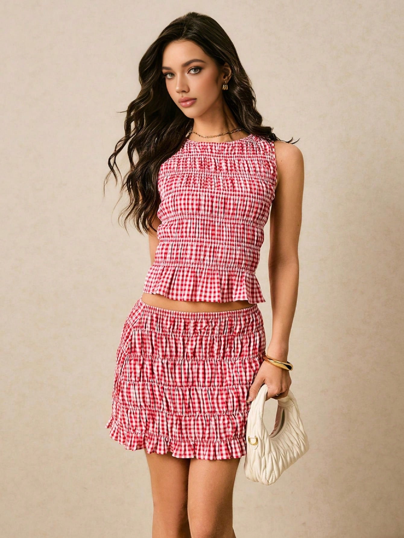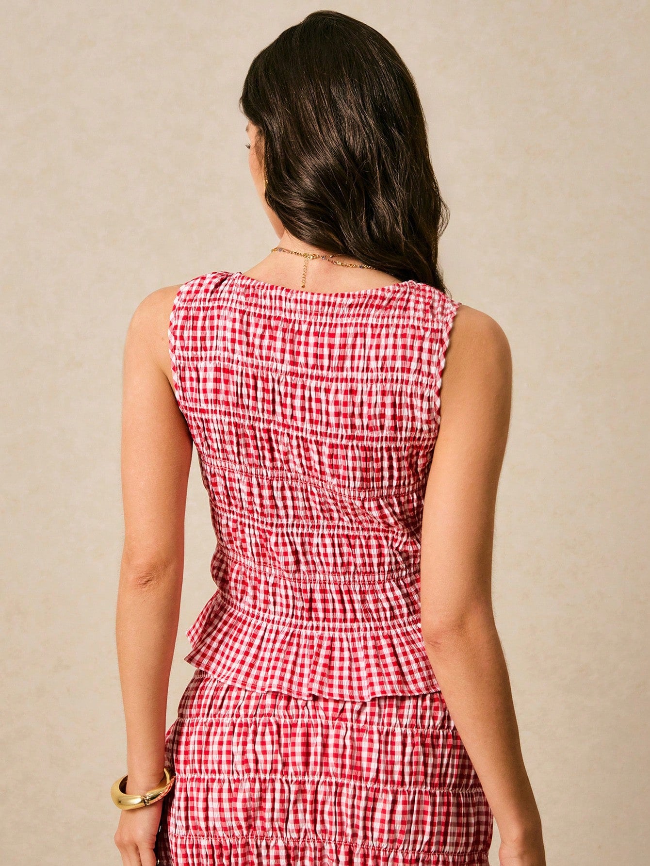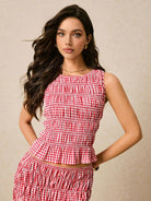 Poï?½selle Women's Red And White Gingham Shirred Tank Top: Casual
