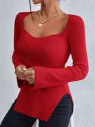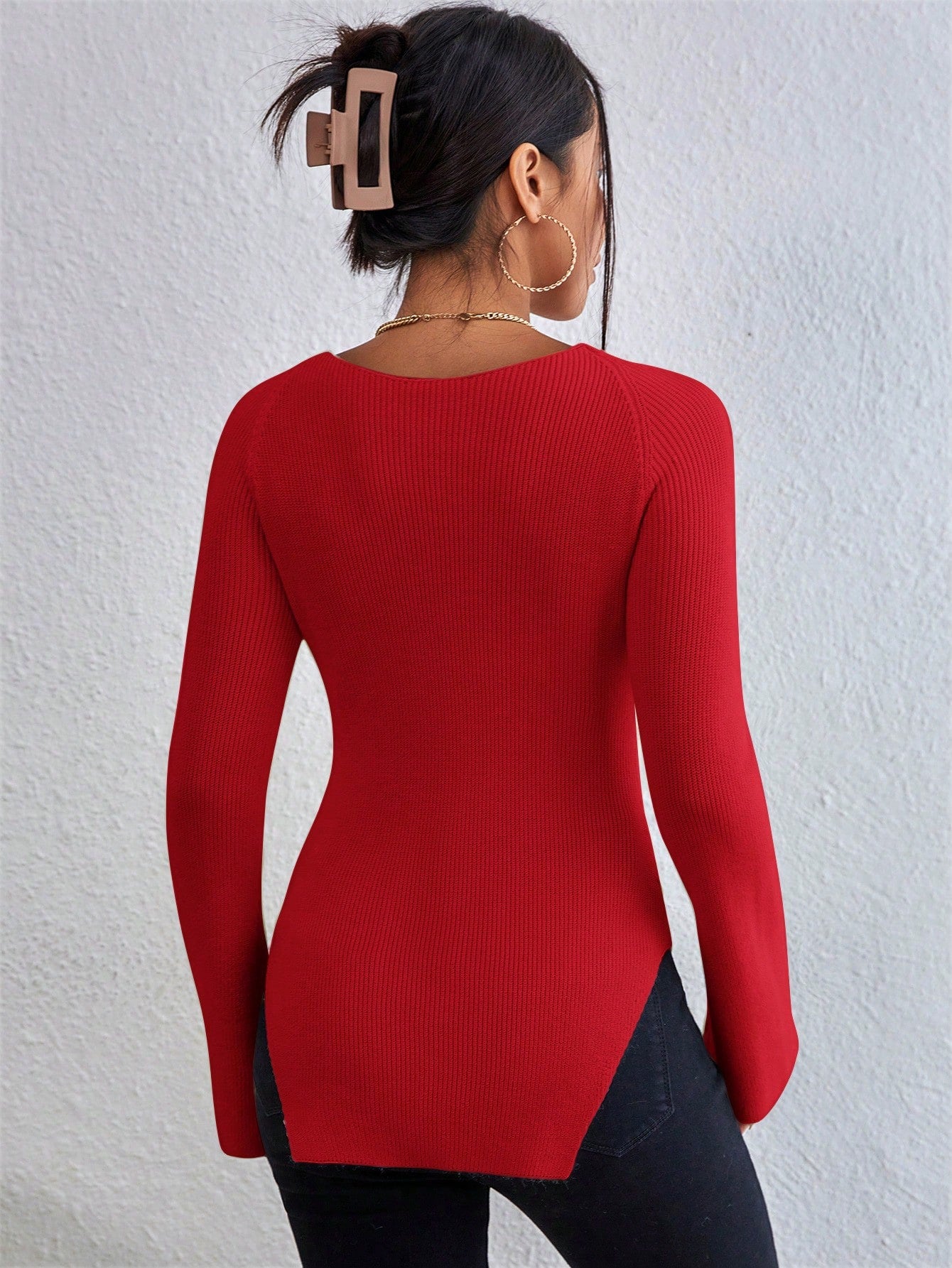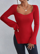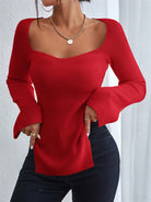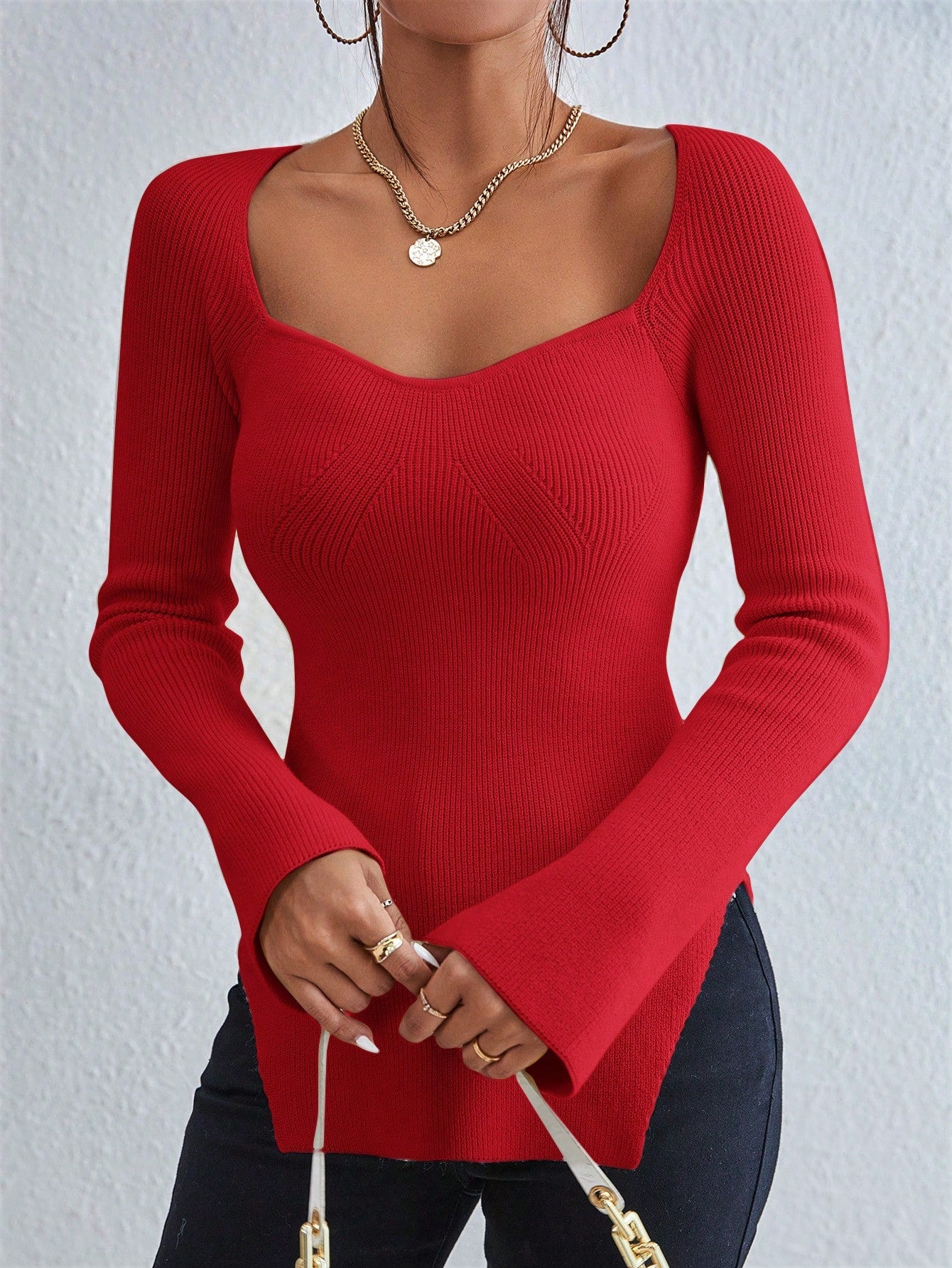 Privï½ Women's Solid Color Sweetheart Neck Long Sleeve Pullover Sweater, Autumn/Winter, Fall And Winter,