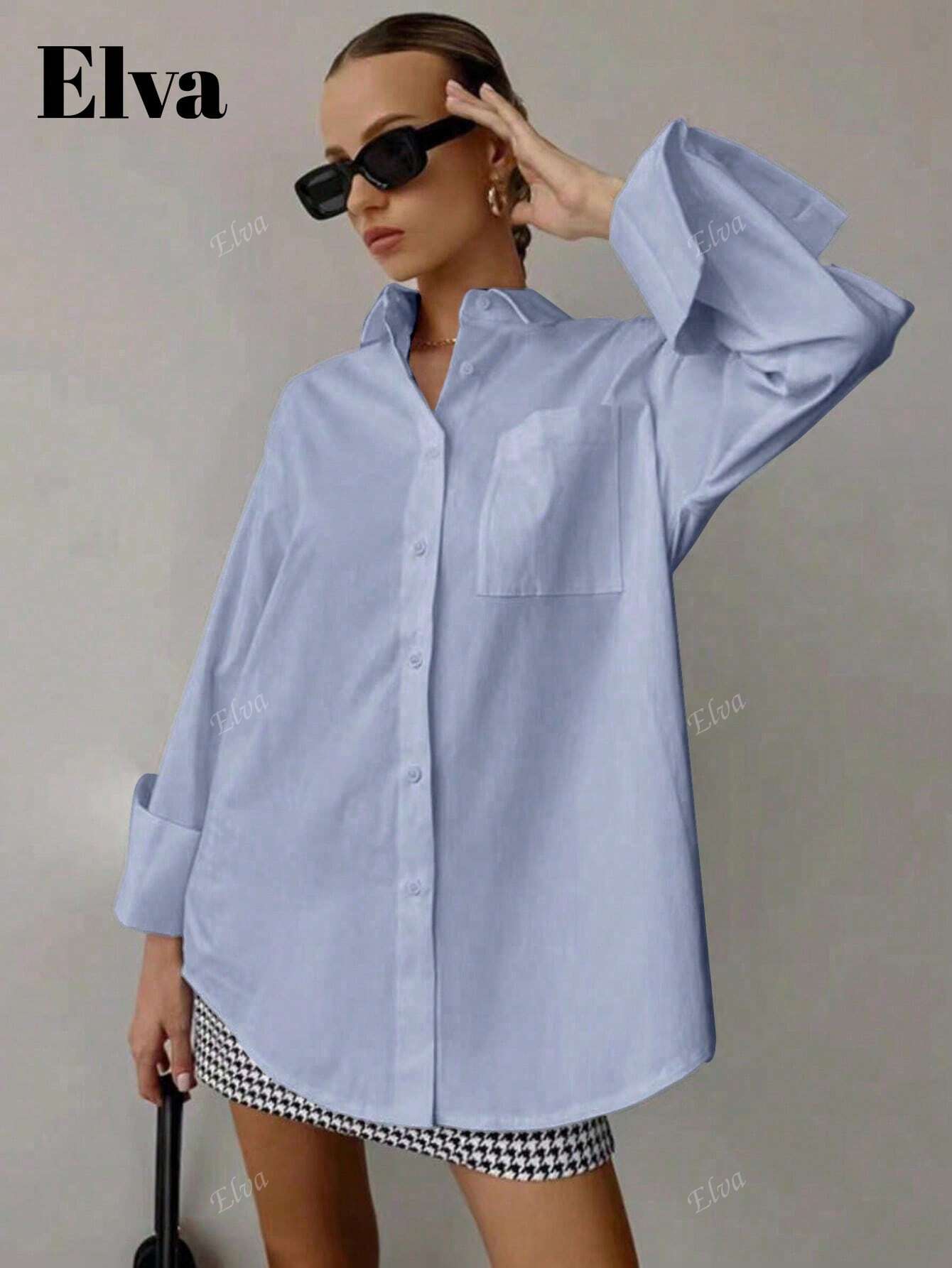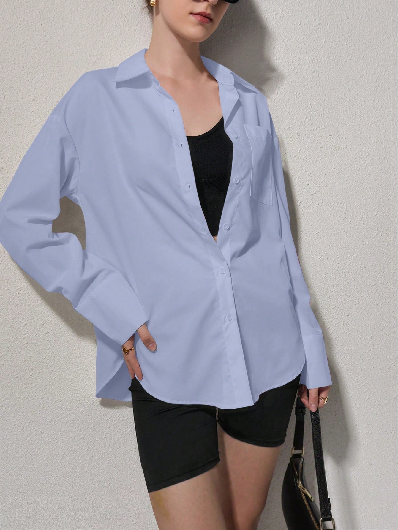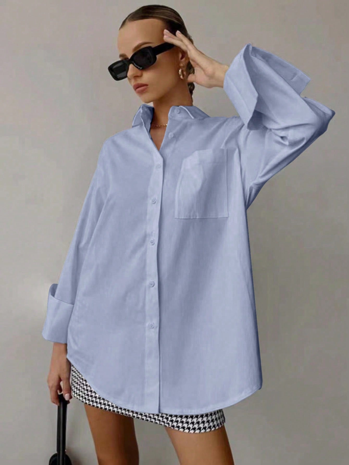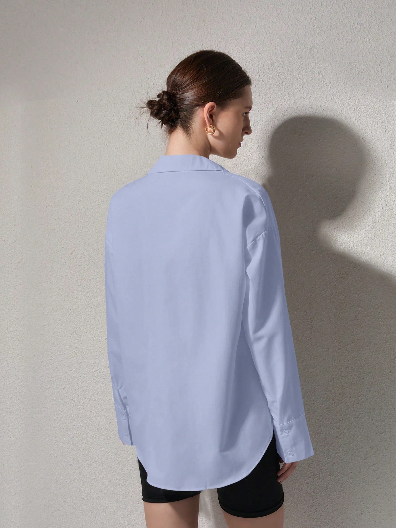 QIANZHIDU Elva Women Solid Color Loose Long Sleeved Business Interview Commuting Casual Relaxed Feeling