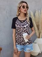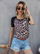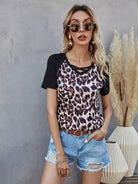 تي شيرت بأكمام متقاطعة بأزرار متقاطعة بالألوان والفهد