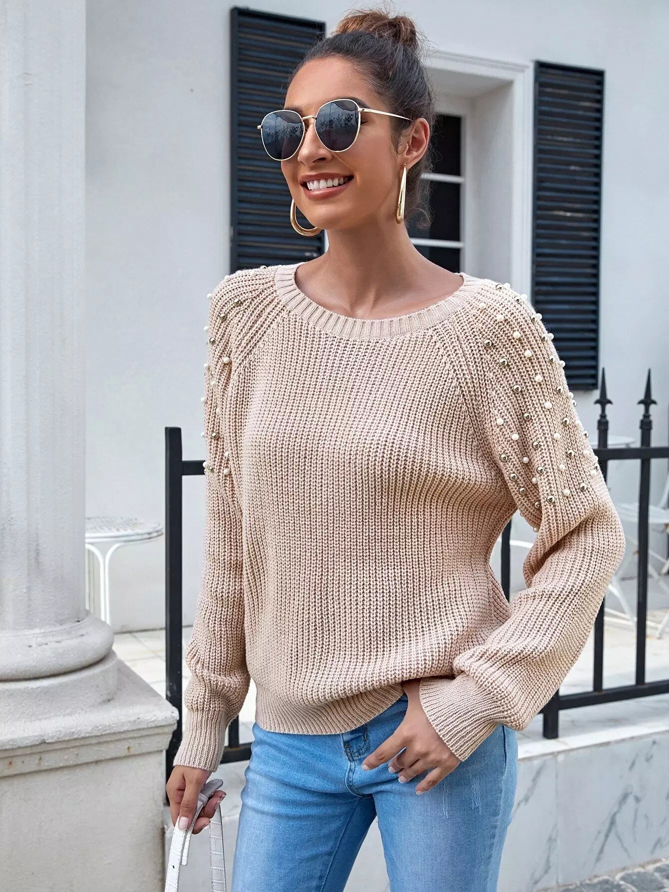 سترة راجلان بأكمام من اللؤلؤ والخرز السادة