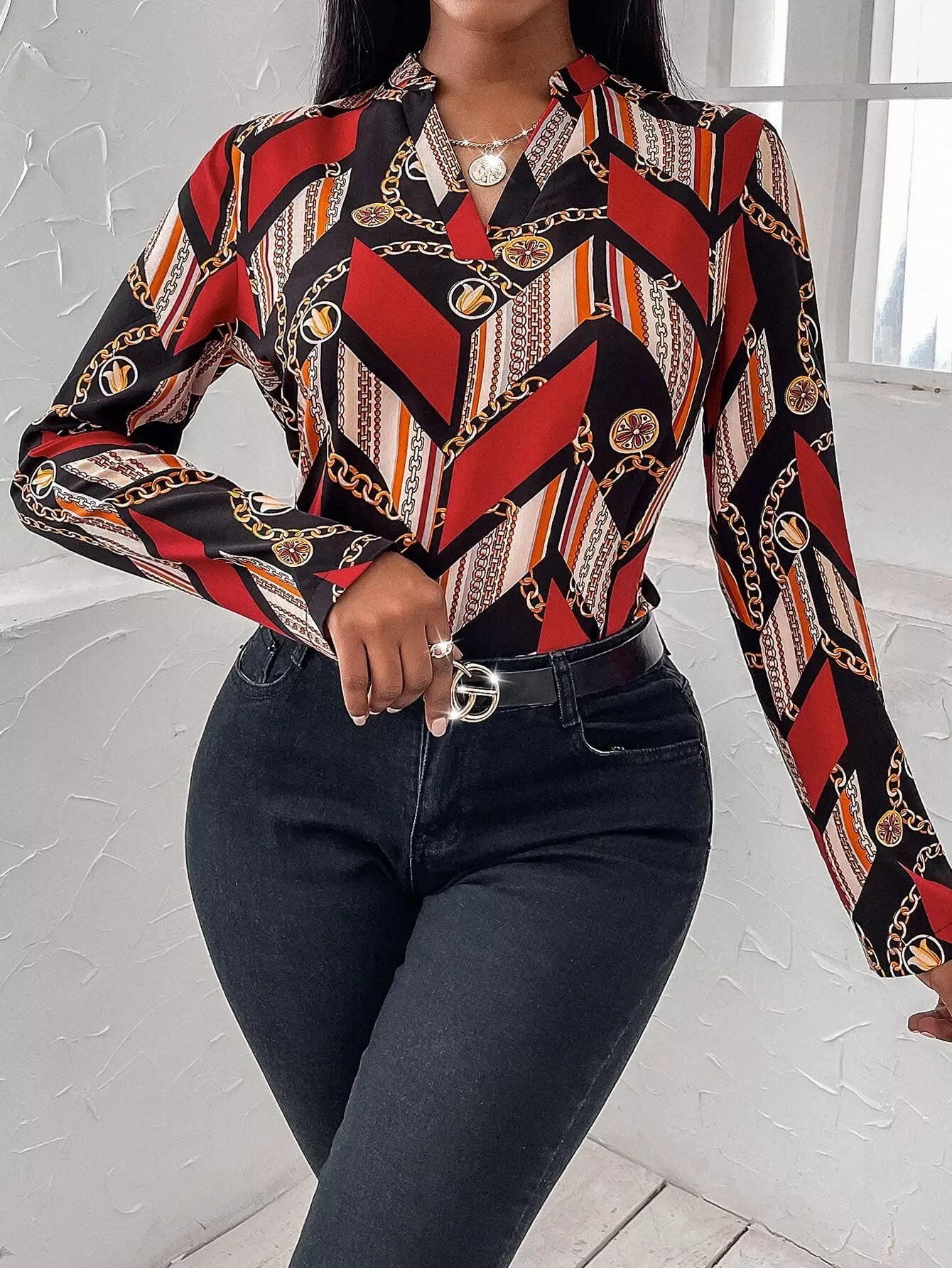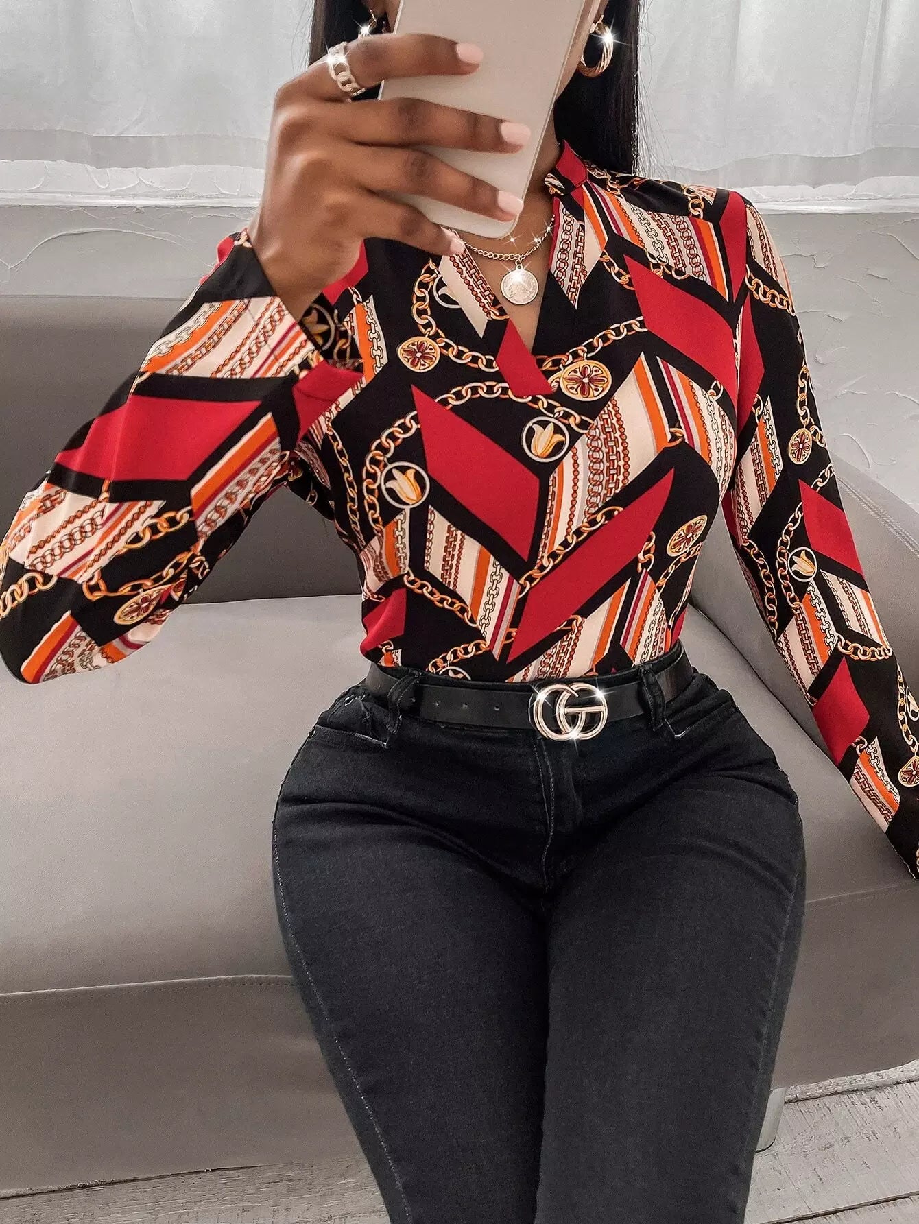 بلوزة عشوائية بطبعة سلسلة وشيفرون