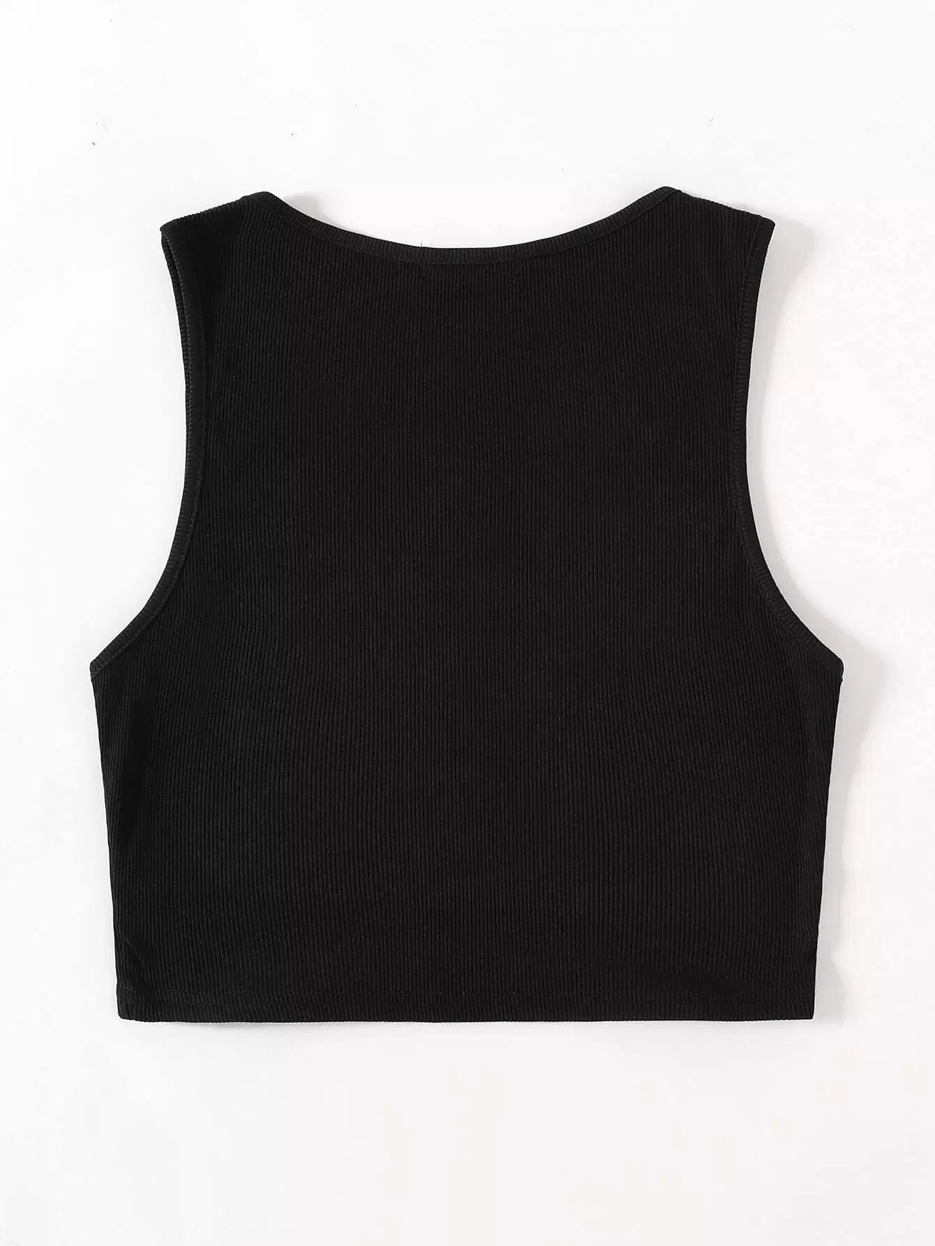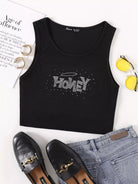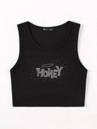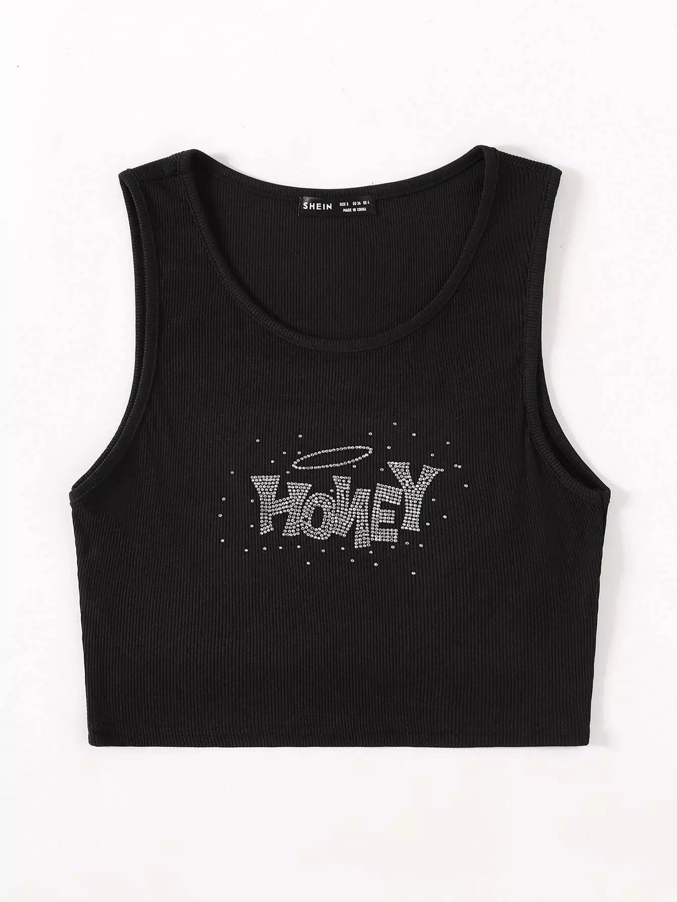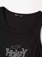 تانك بدون أكمام بنقشة حروف على شكل حرف رينستون