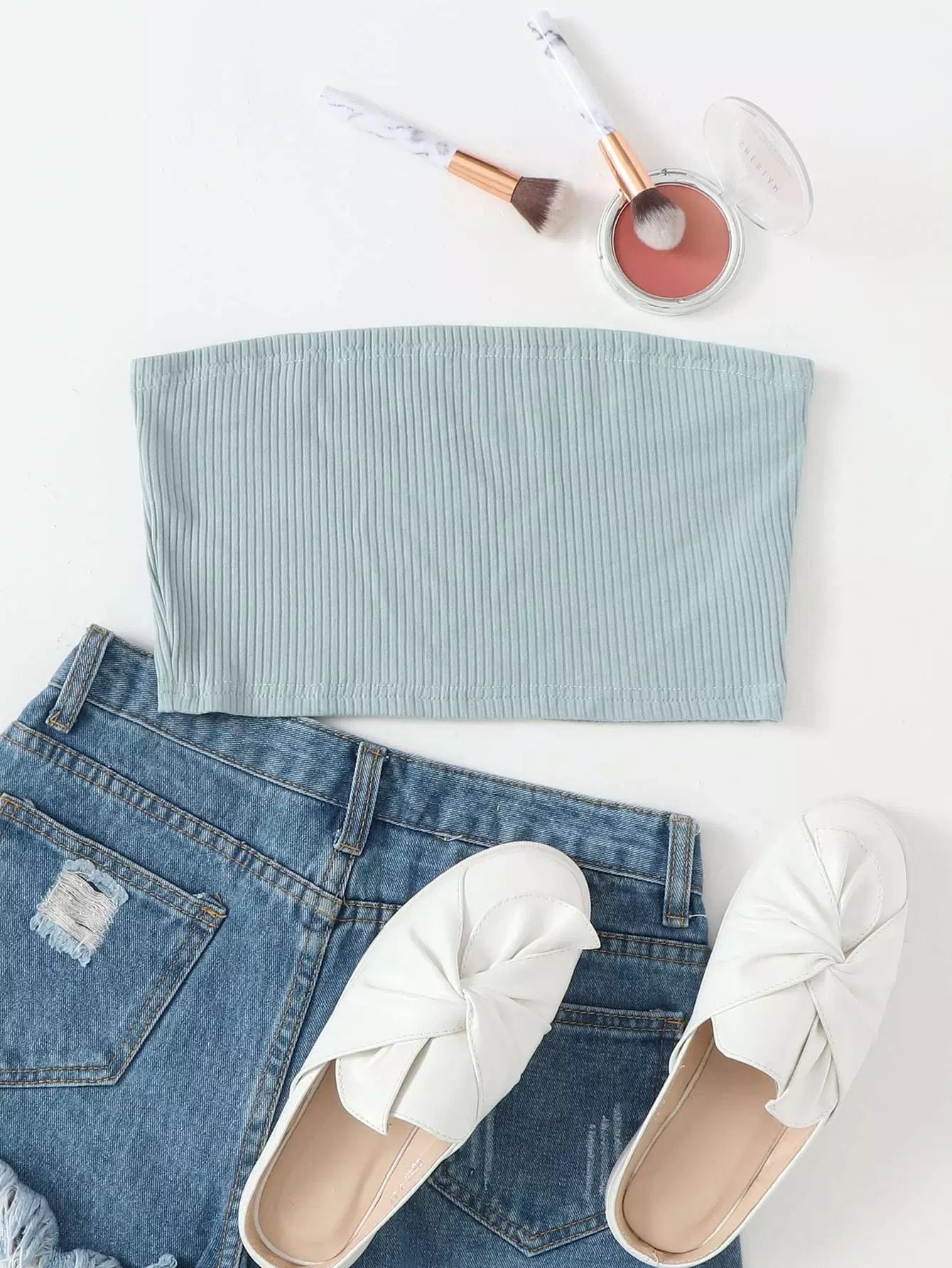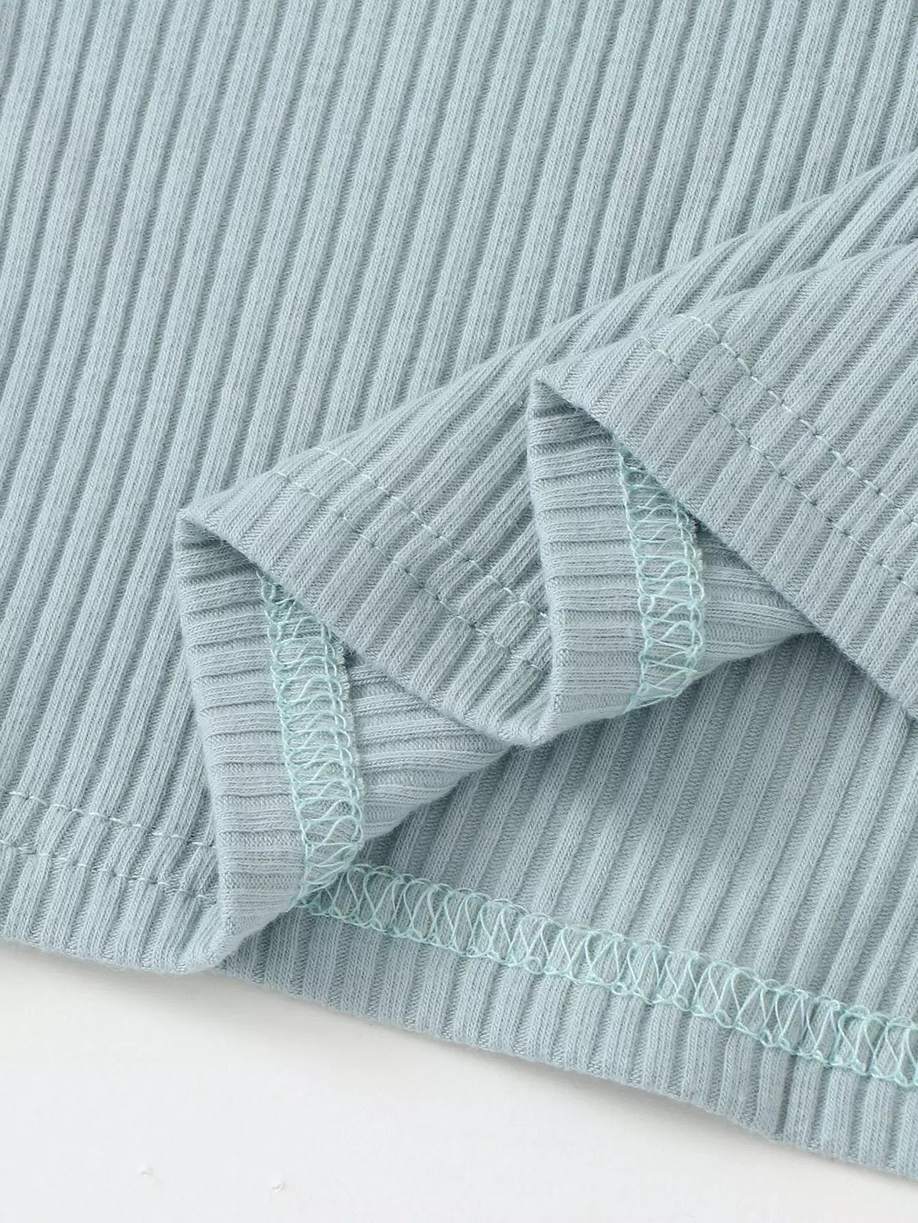النساء - بلوزة قصيرة متماسكة مضلعة
