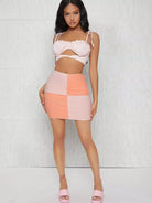 تنورة قصيرة مضلعة ملونة مضلعة بودي بلوك قصير