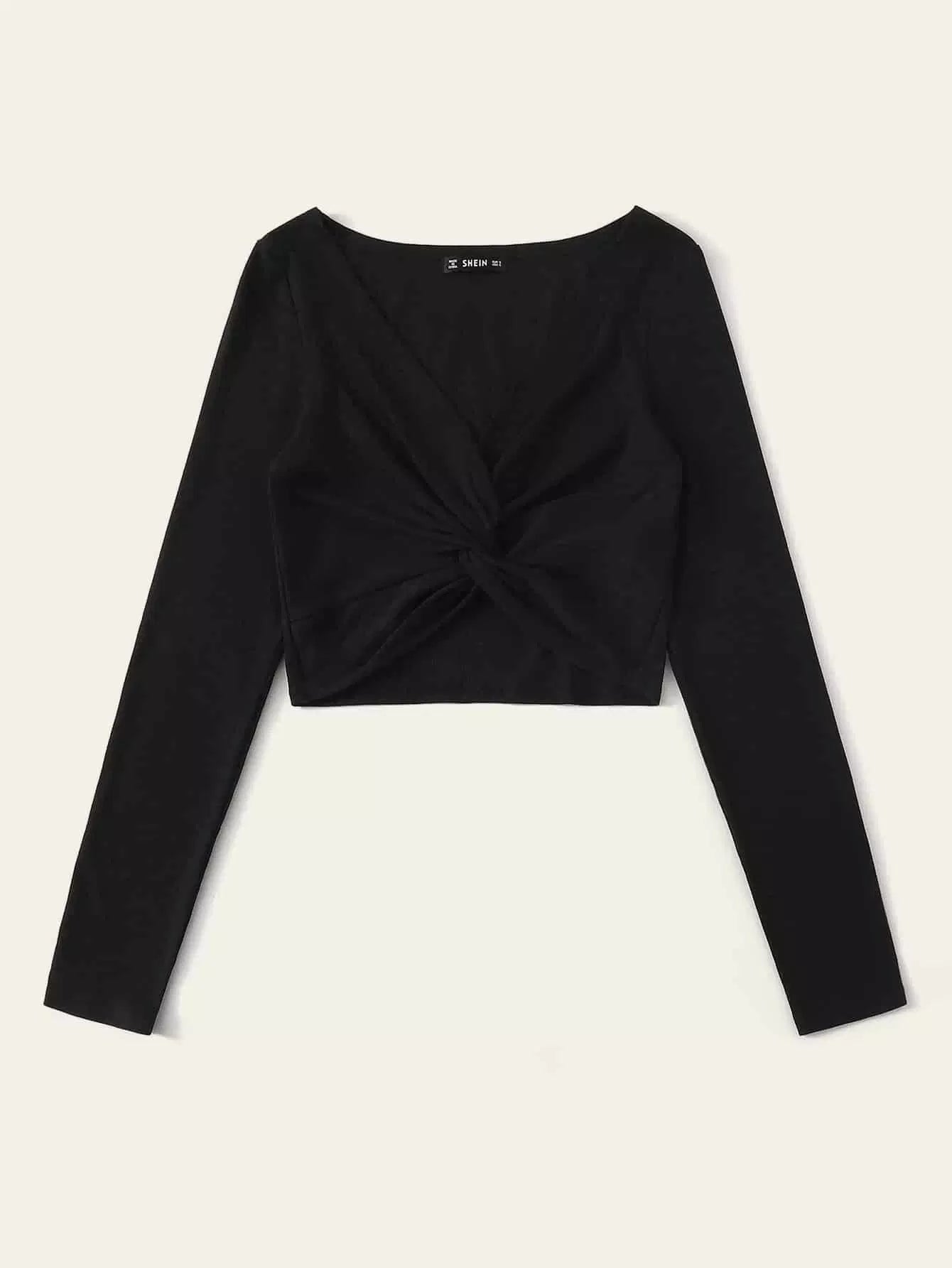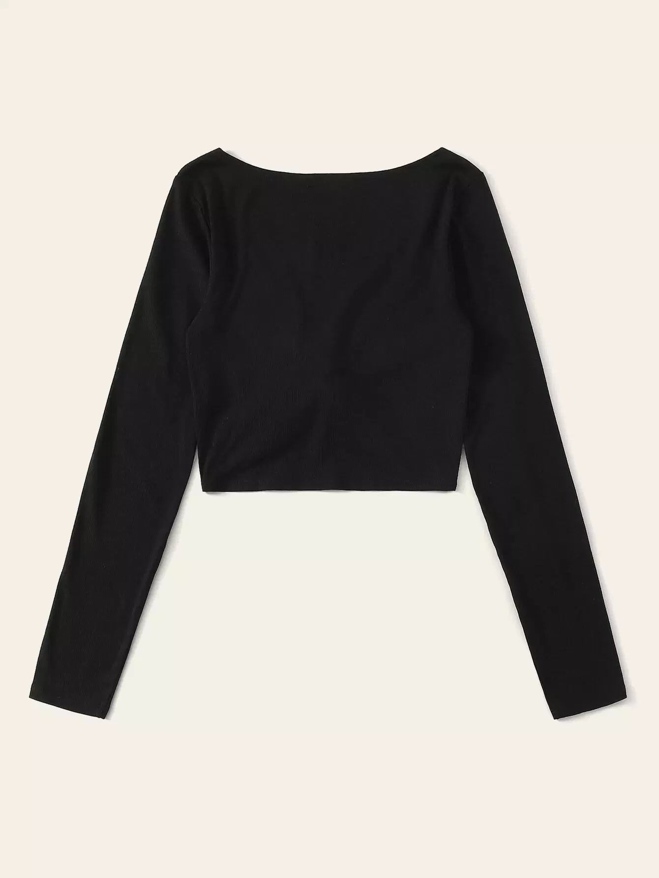 بلوزة قصيرة بجزء علوي مضلعة ملتوية من الأمام مضلعة