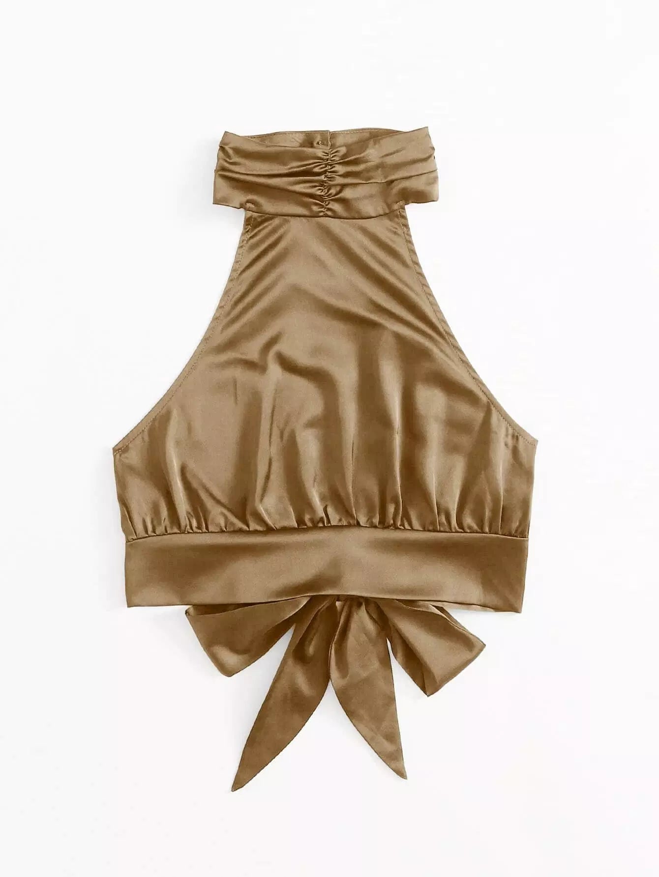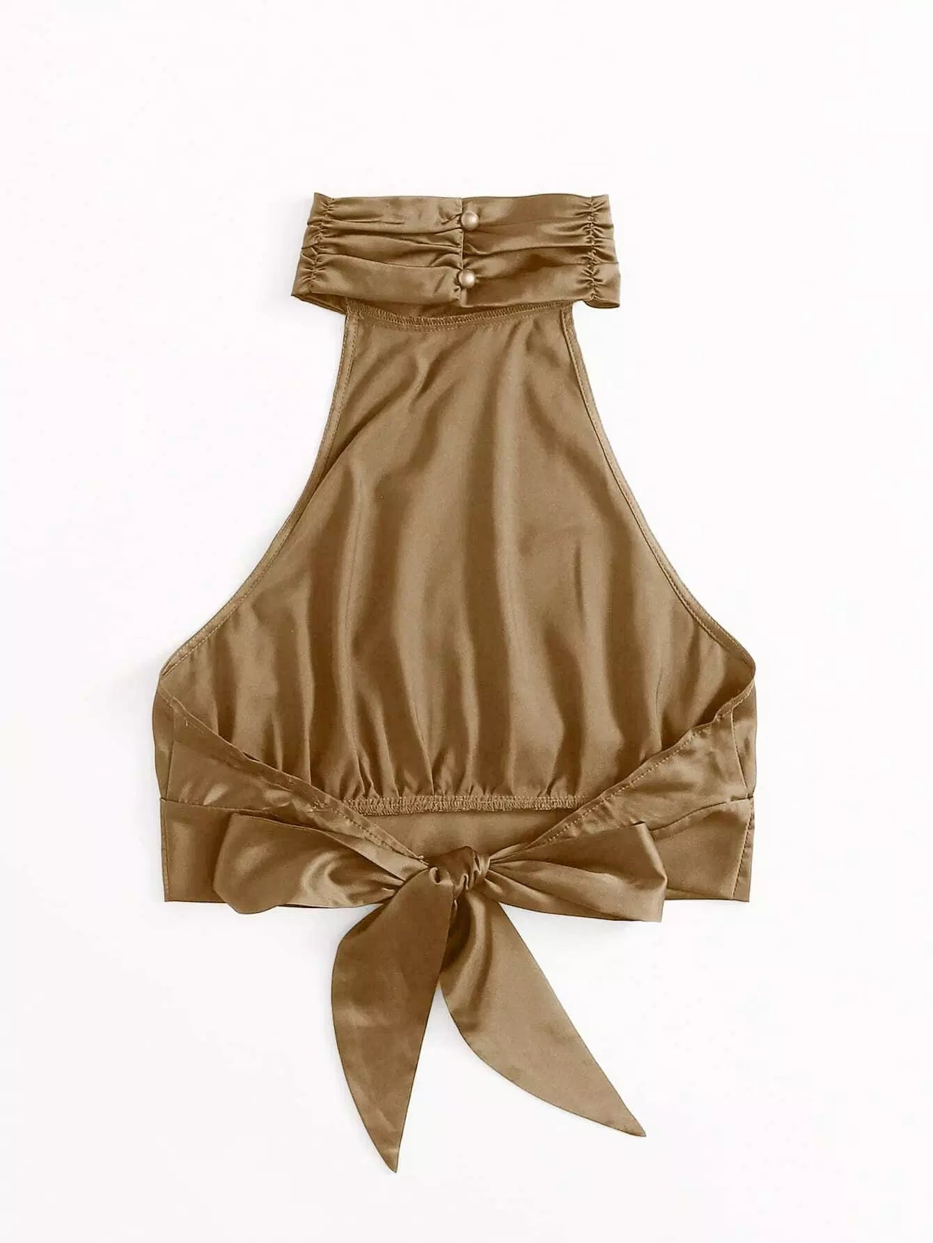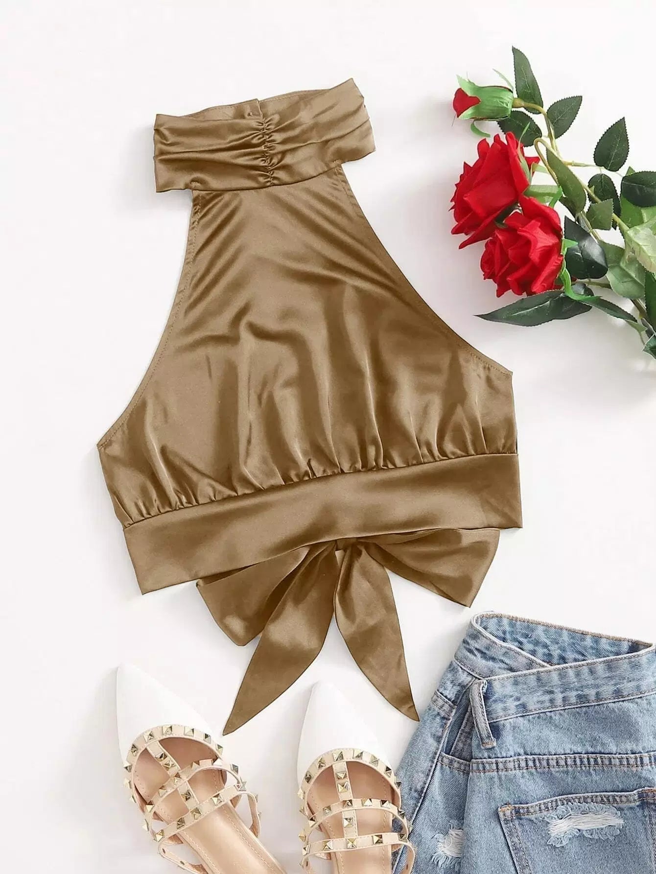 بلوزة قصيرة مكشوفة الظهر برباط حول الرقبة