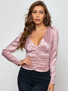 بلوزة من الساتان الجاكار المشكوكة بالياقوت والجاكار