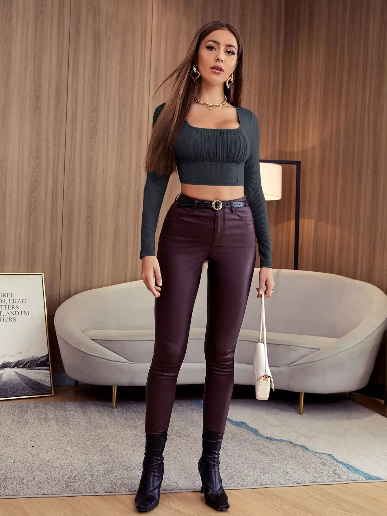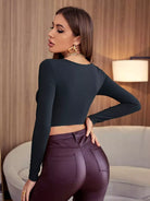 تي شيرت قصير بأكمام طويلة ومكشكش