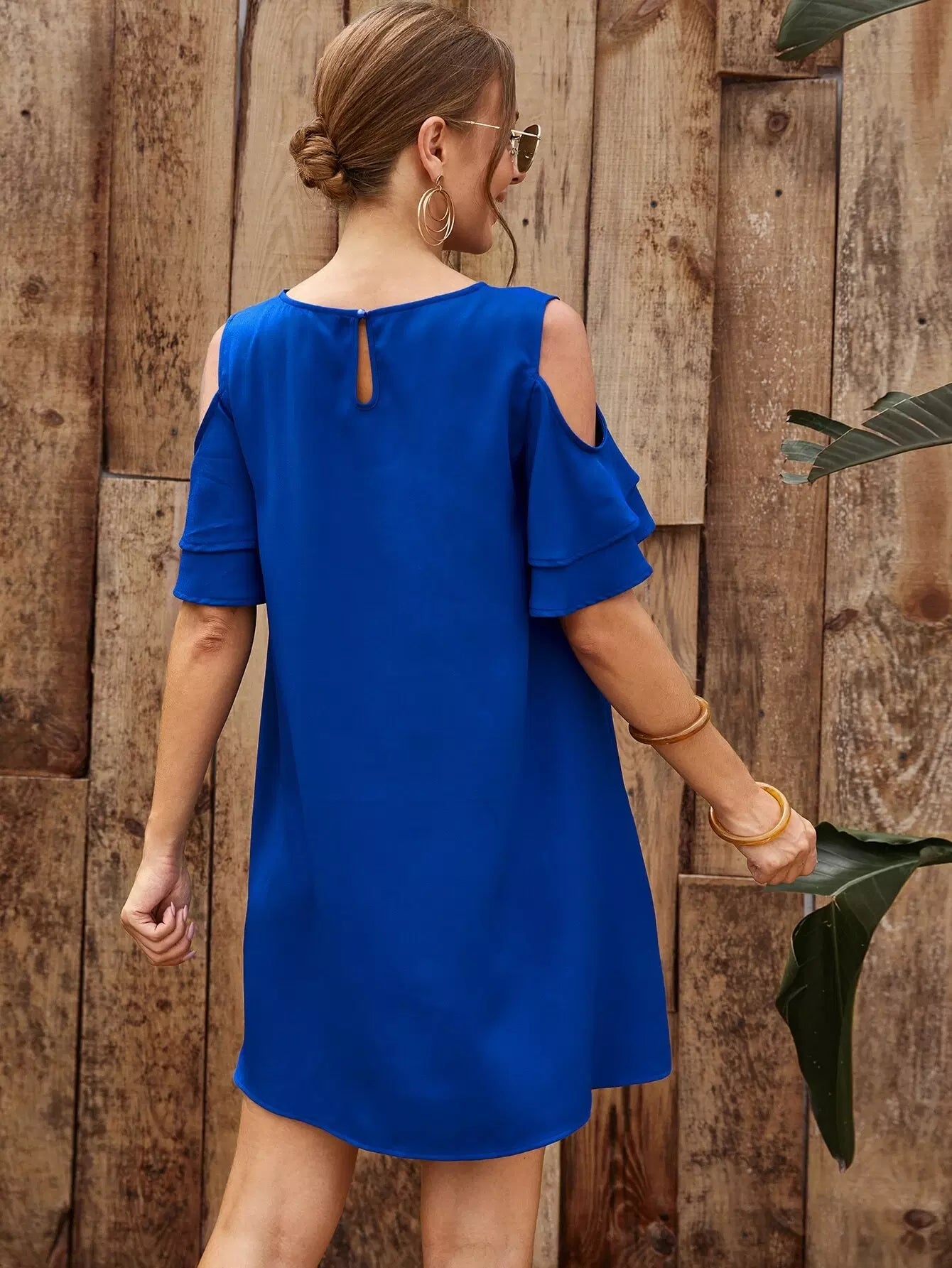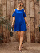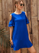 فستان كشكش بأكمام مكشكشة بأكتاف باردة