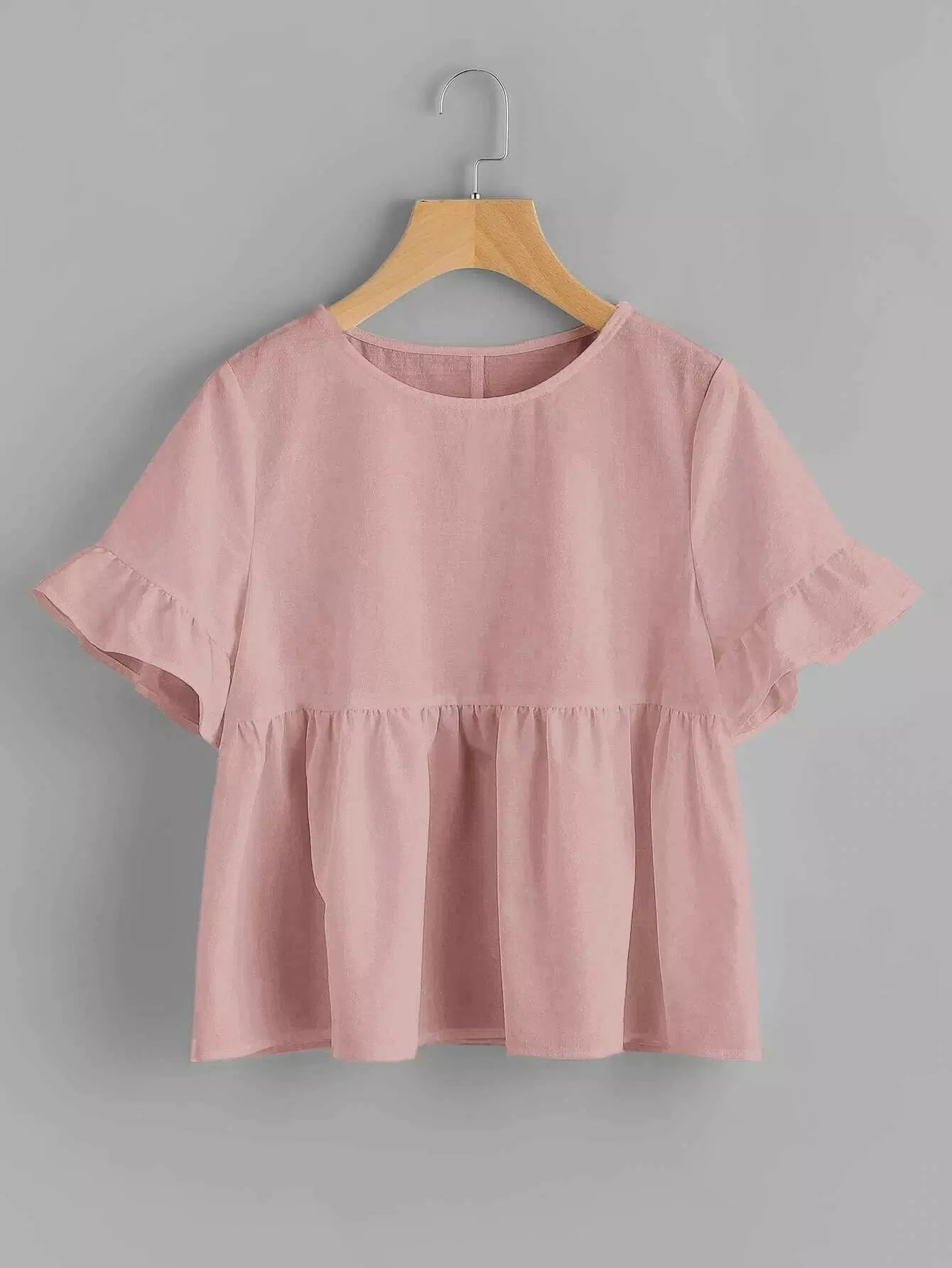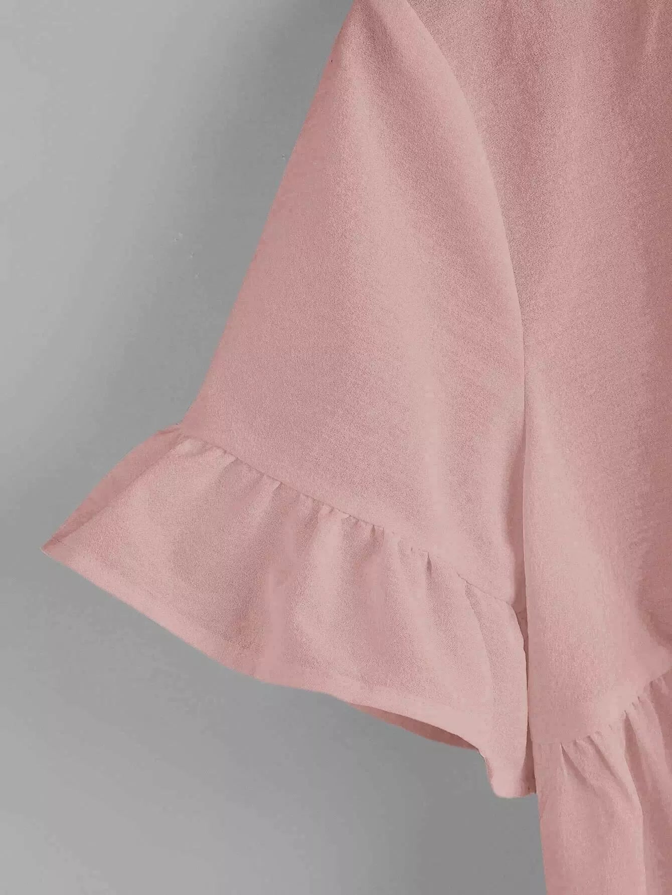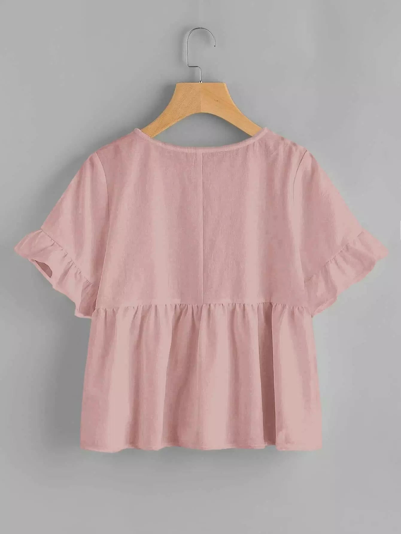 بلوزة سادة بأكمام مكشكشة بأكمام مكشكشة