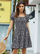 فستان كشكش بحافة مكشكشة بطبعة زهور