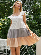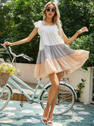فستان كشكش بحواف كشكش ملون بلوك سموك