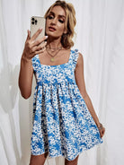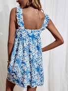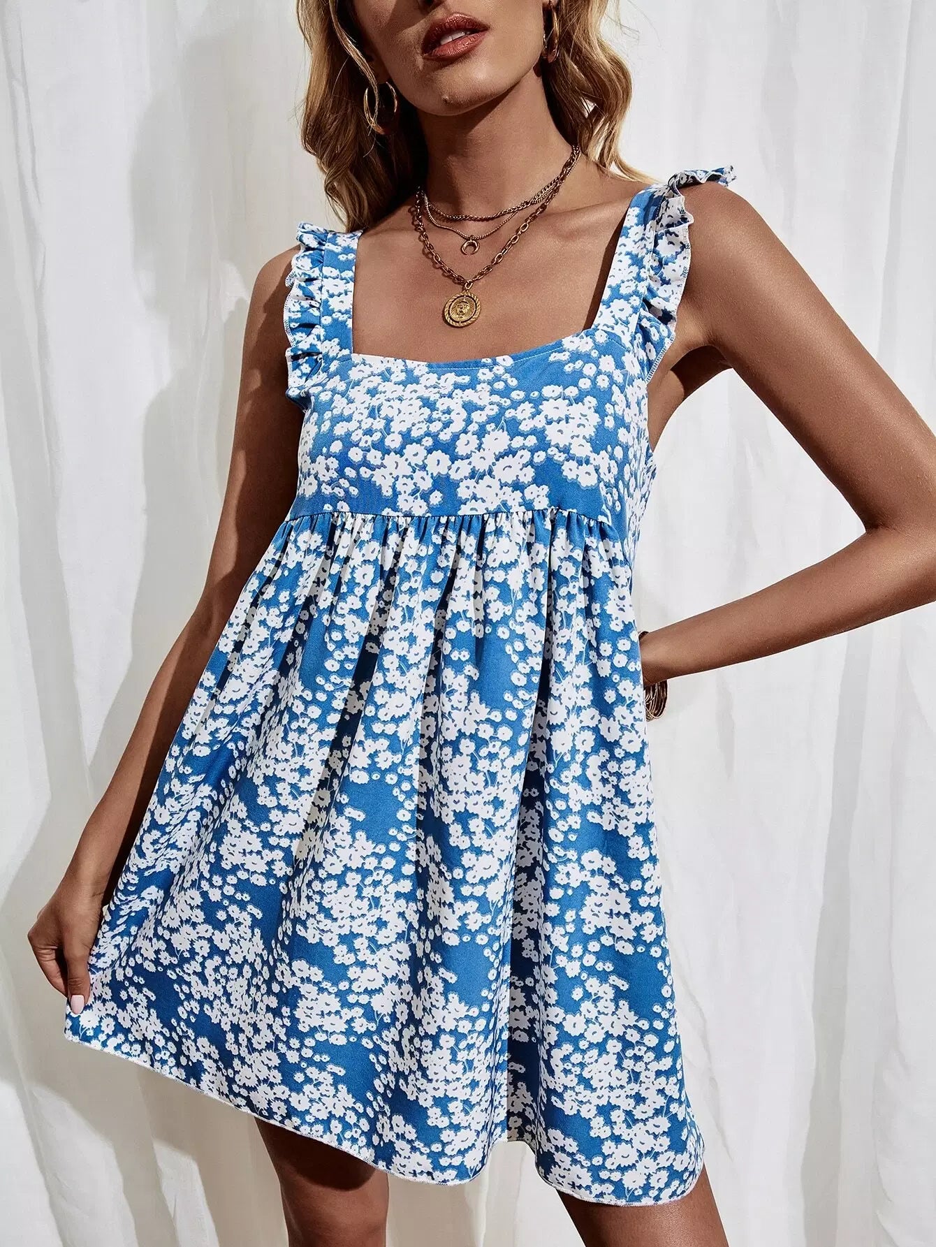 للنساء - فستان واسع بطبعة زهور وحواف مكشكشة وسحاب خلفي