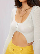 للنساء - بلوزة بحاشية غير متماثلة وأزرار أمامية برقبة واسعة