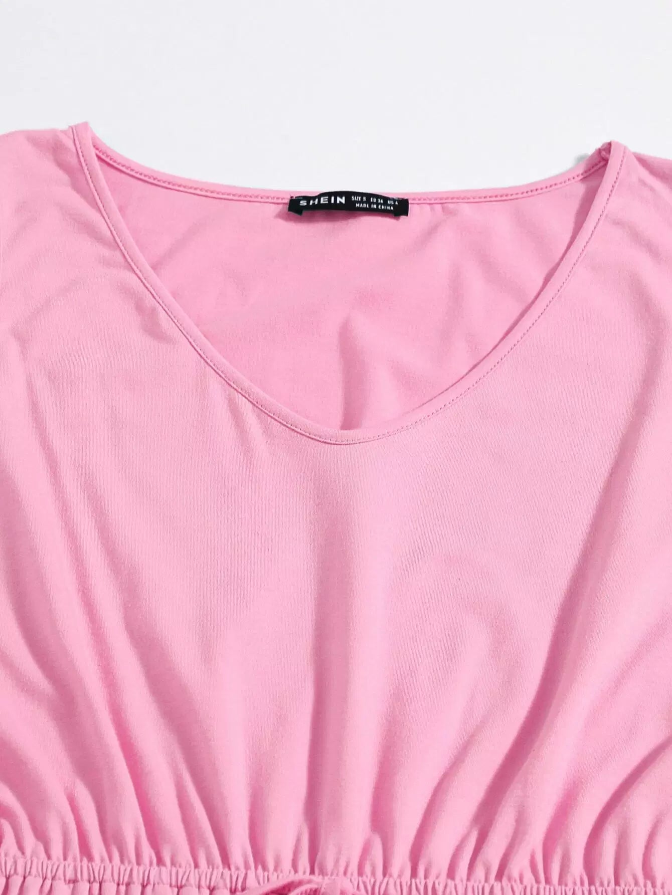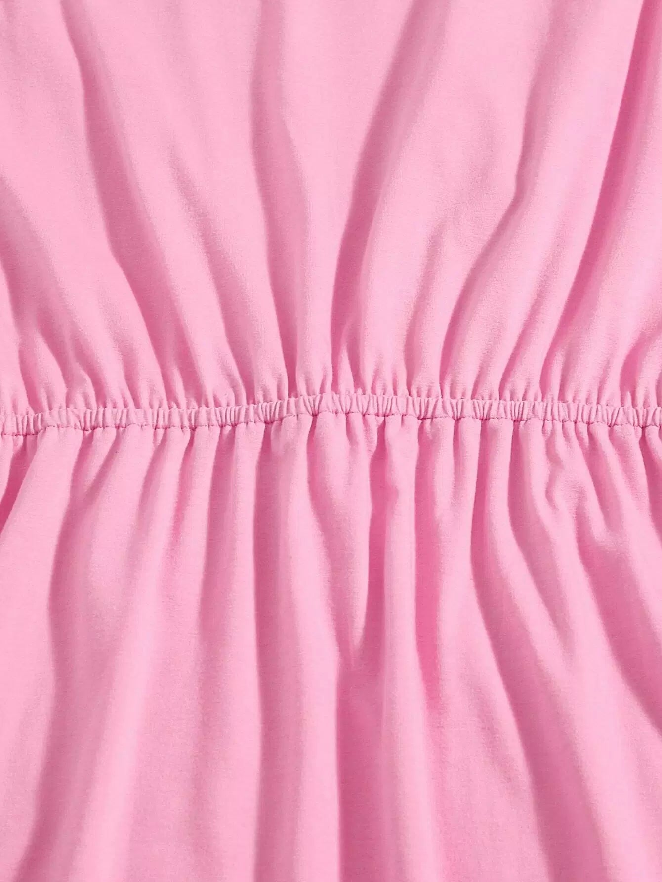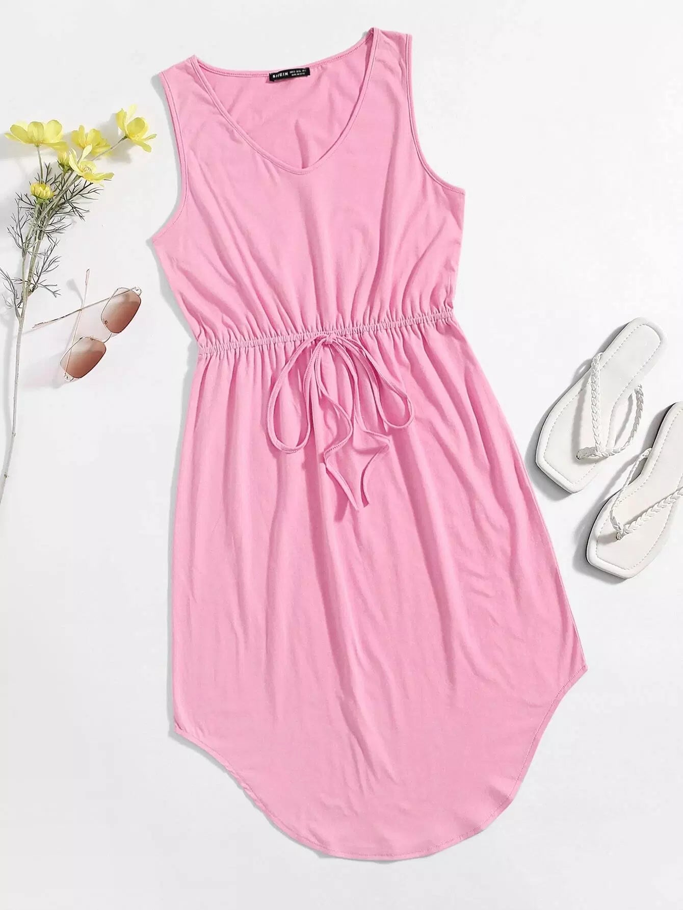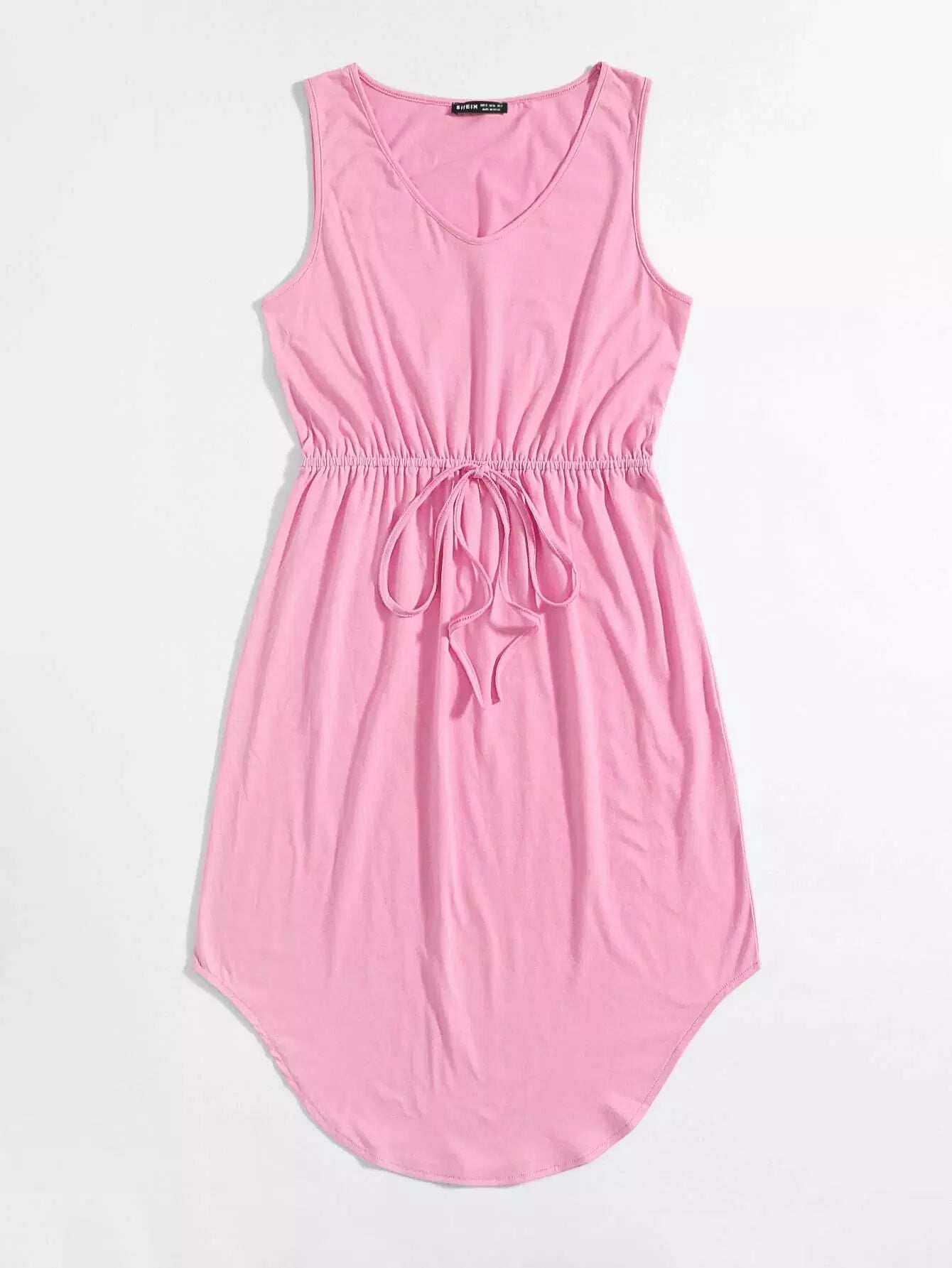 فستان بياقة دائرية برقبة دائرية وربطة عنق أمامية منحنية
