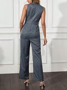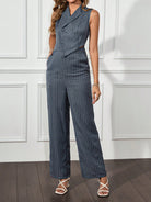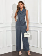 SHEIN Clasi Elegant Grey-Blue Striped Blazer Vest + Straight Leg Pants 2 In 1 Jumpsuit For Women Women