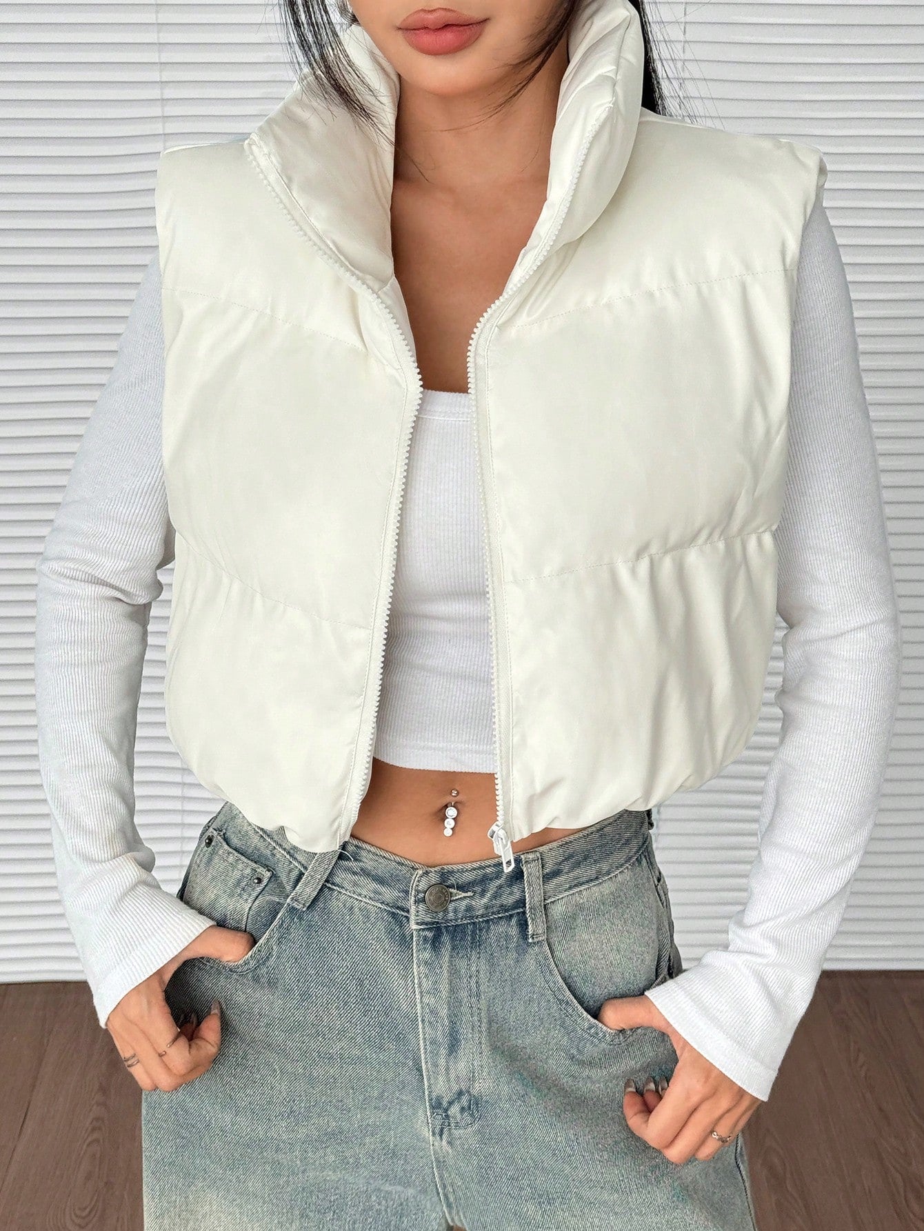 women SHEIN EZwear Women's Solid Color Front Zipper Sleeveless Casual Winter Jacket