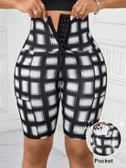 SHEIN Lady Women's High Waist Plaid Elastic Cinched Waist Buttoned Bike Shorts