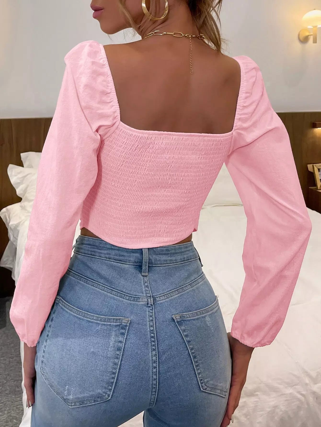 بلوزة قصيرة ملفوفة على الظهر بشريط ملفوف على الظهر