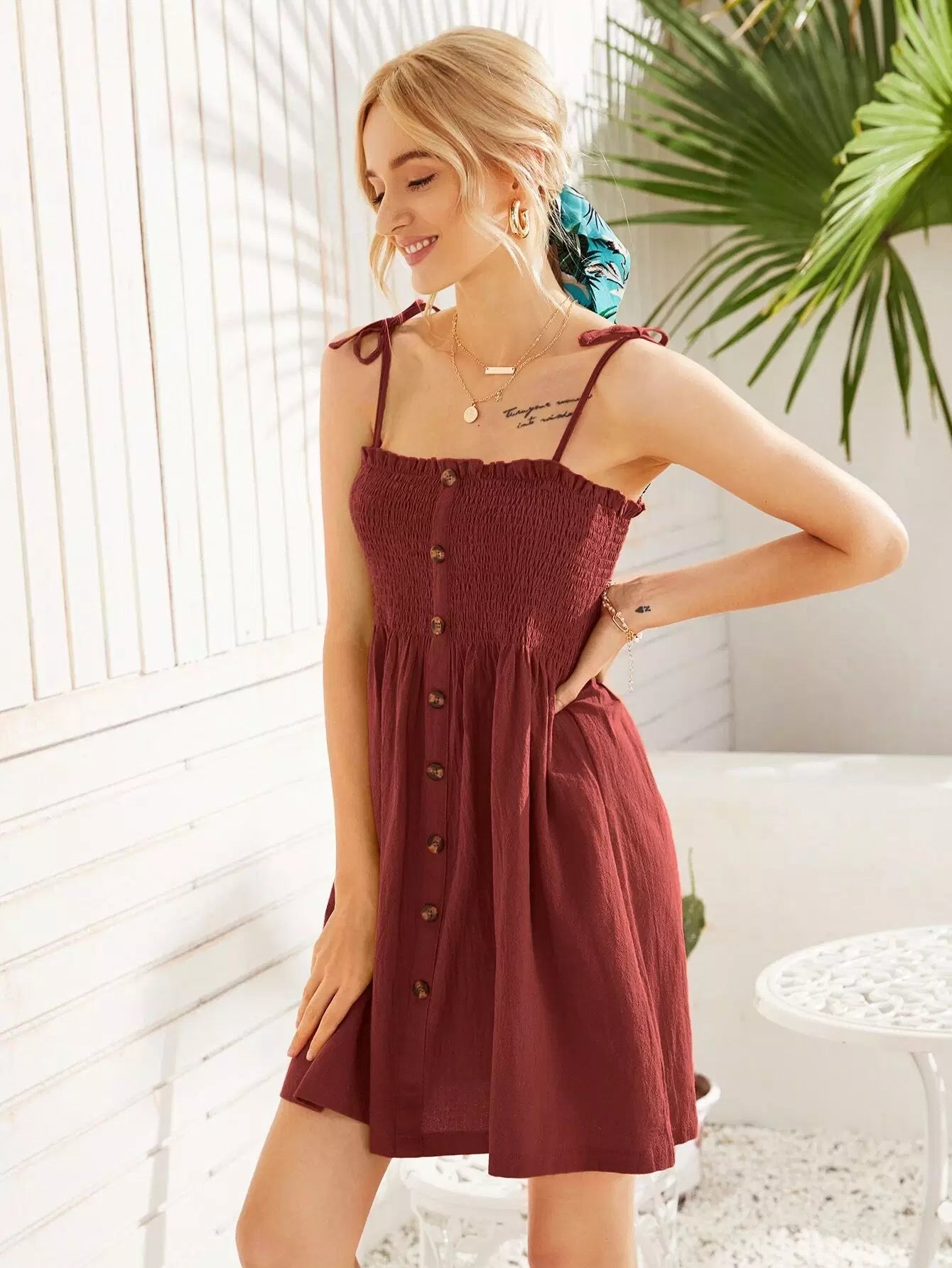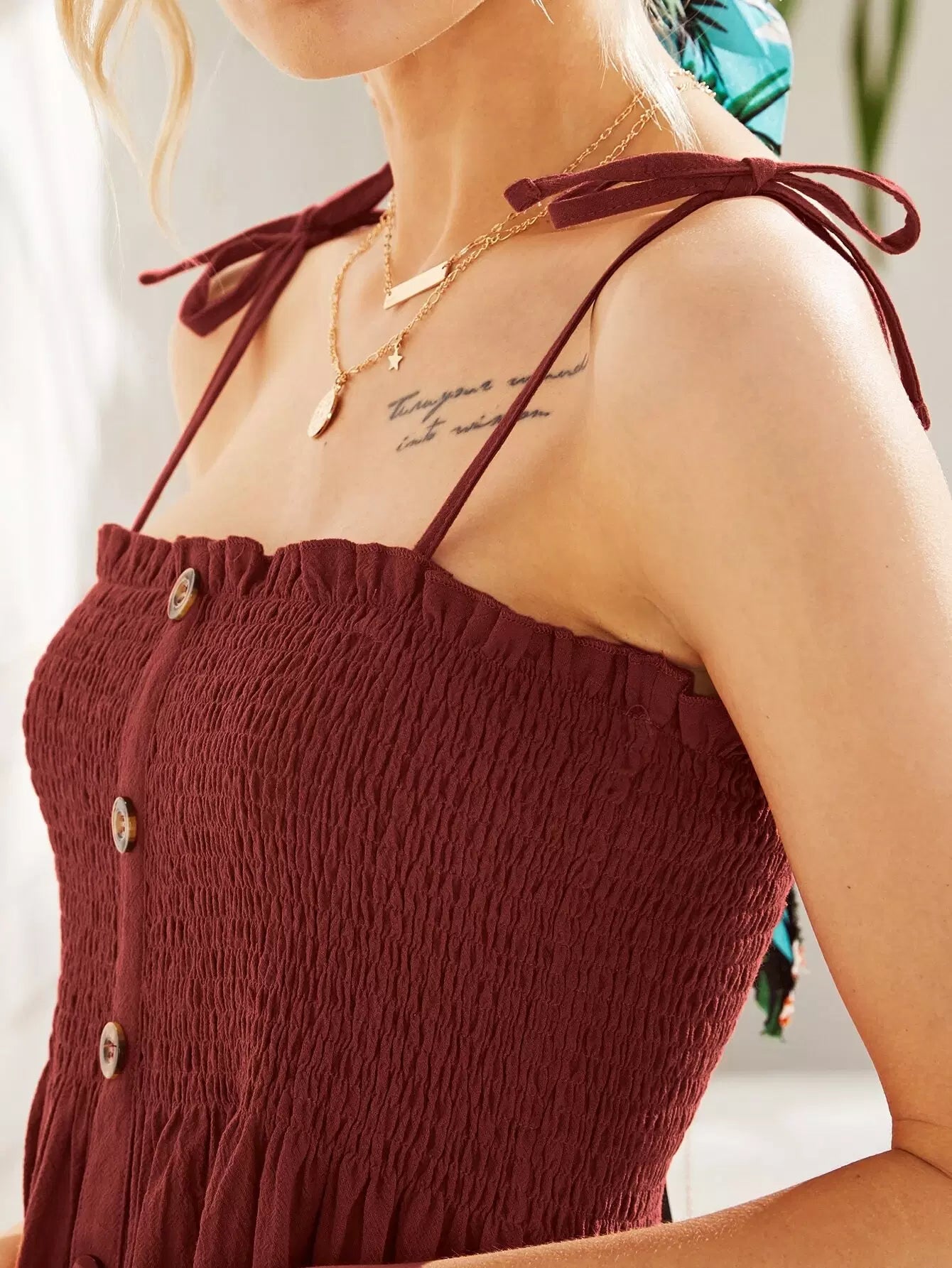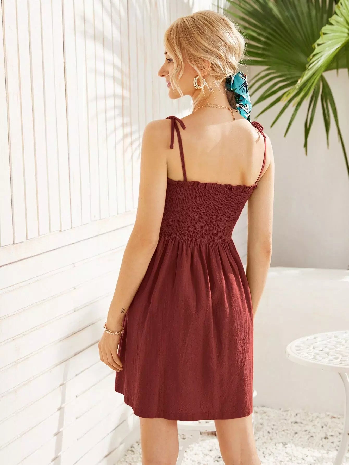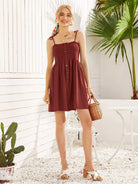 فستان كامي معقود الصدر بشريط معقود الصدر