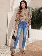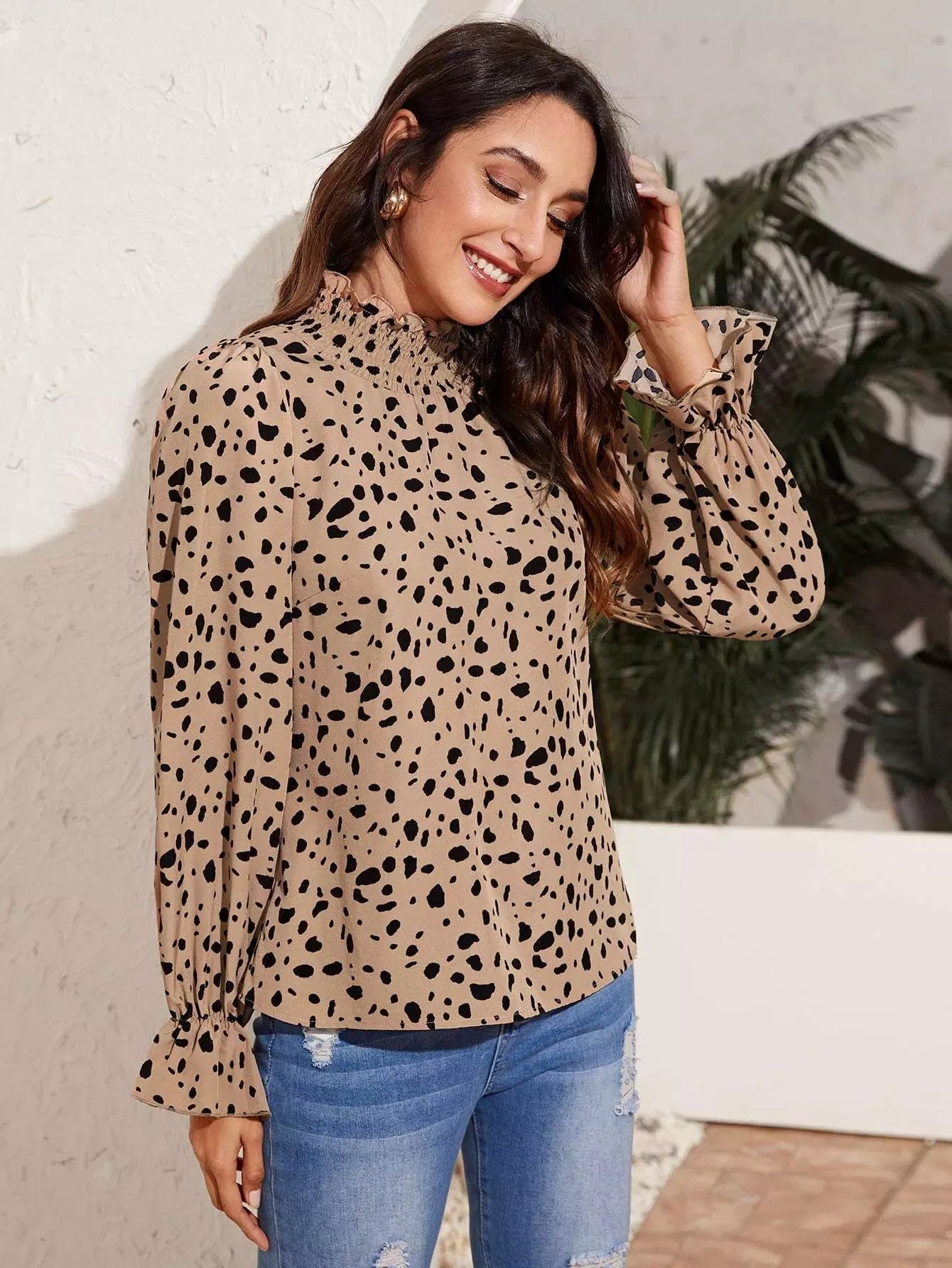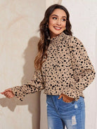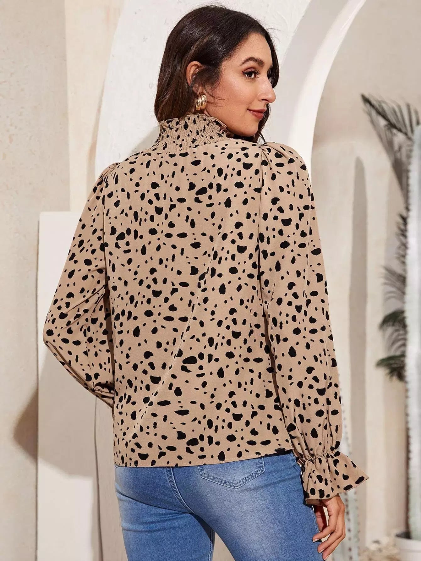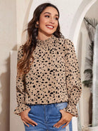 توب برقبة شيرد بفتحة رقبة على شكل جرس بأكمام منقوشة بالكامل