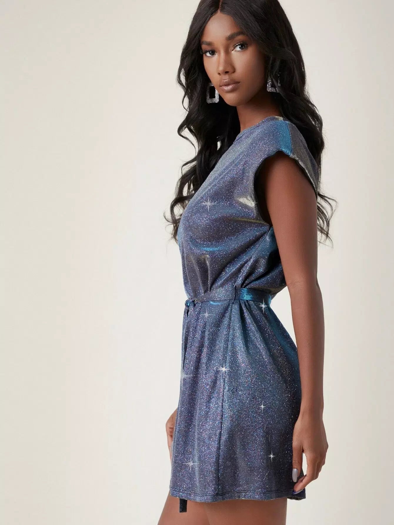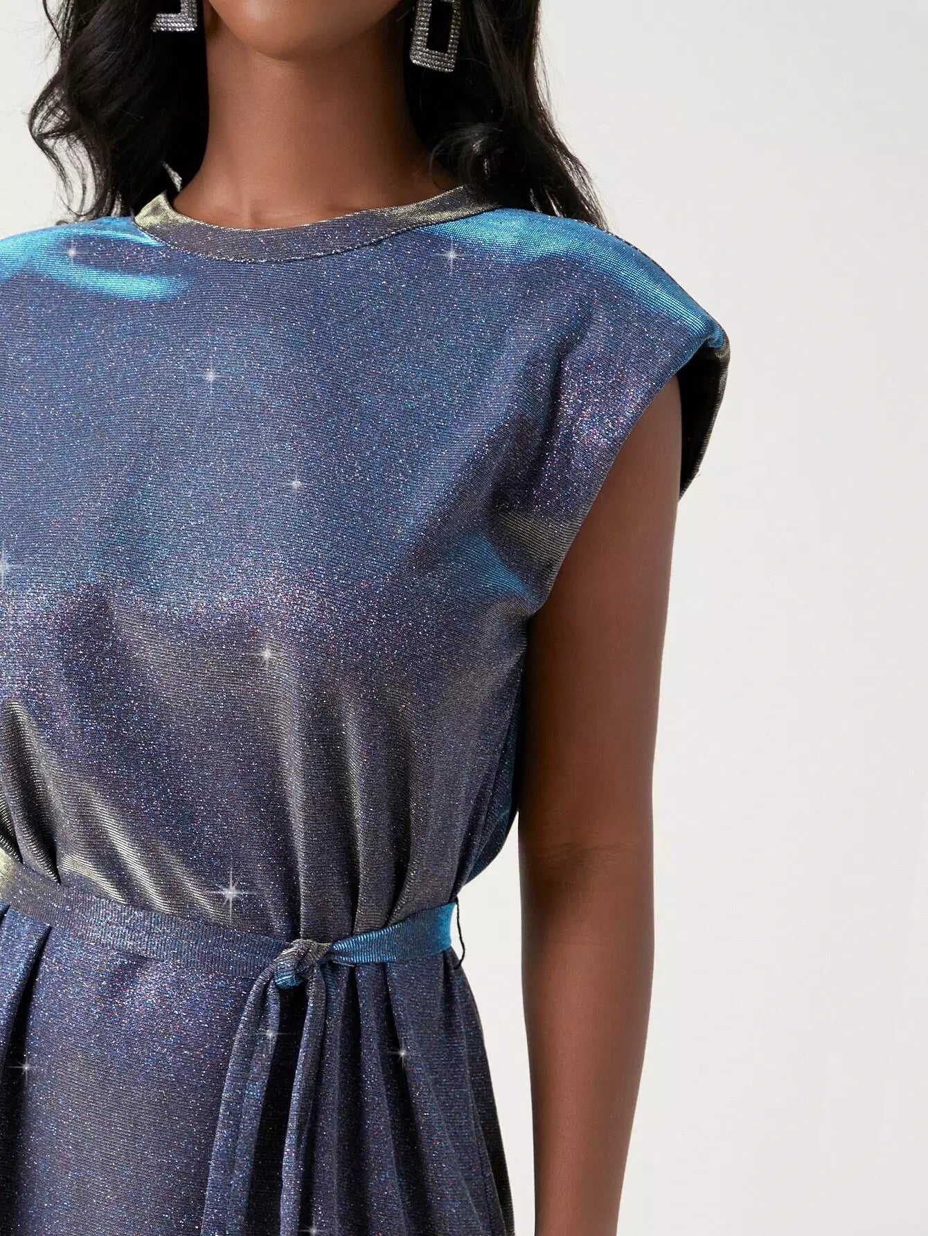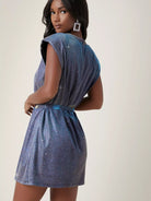 فستان لامع مبطن بالكتف بدون حزام