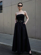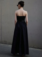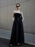 women Siren Gaze Women's Summer Black Top-Tight And Bottom-Wide Knitted Splicing Woven Casual Dress With Side Pockets