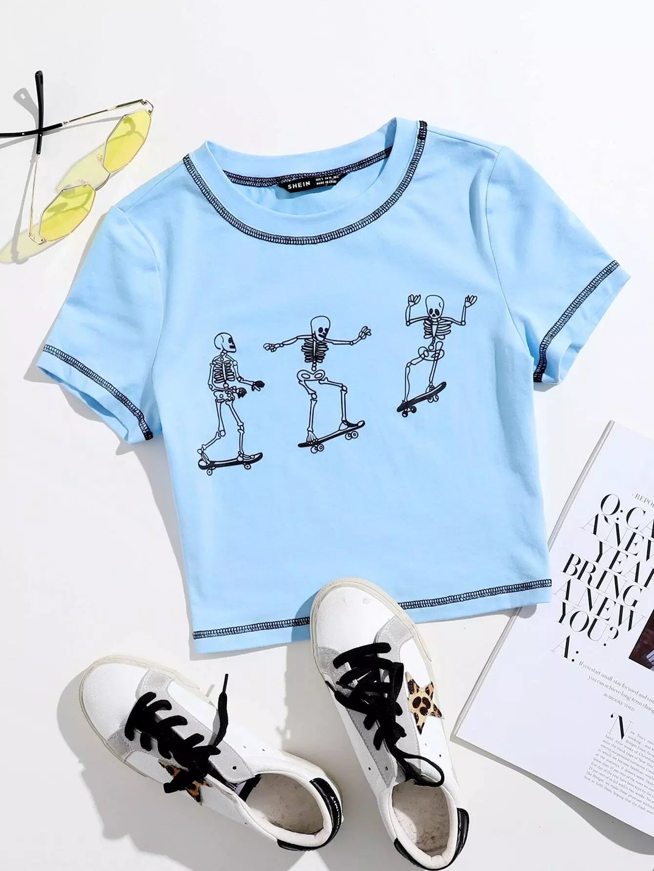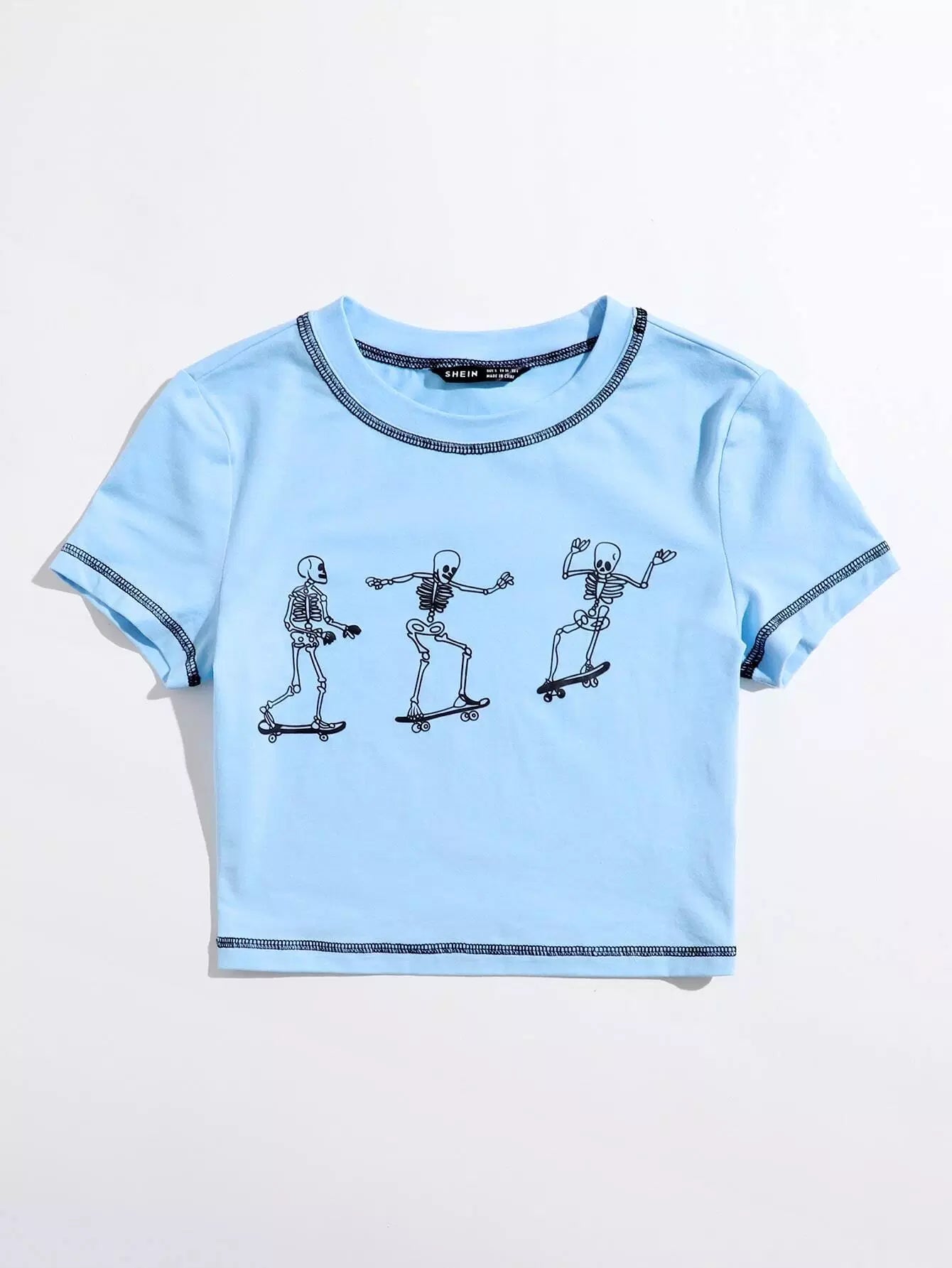 للنساء - تي شيرت بطباعة هيكل عظمي