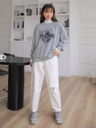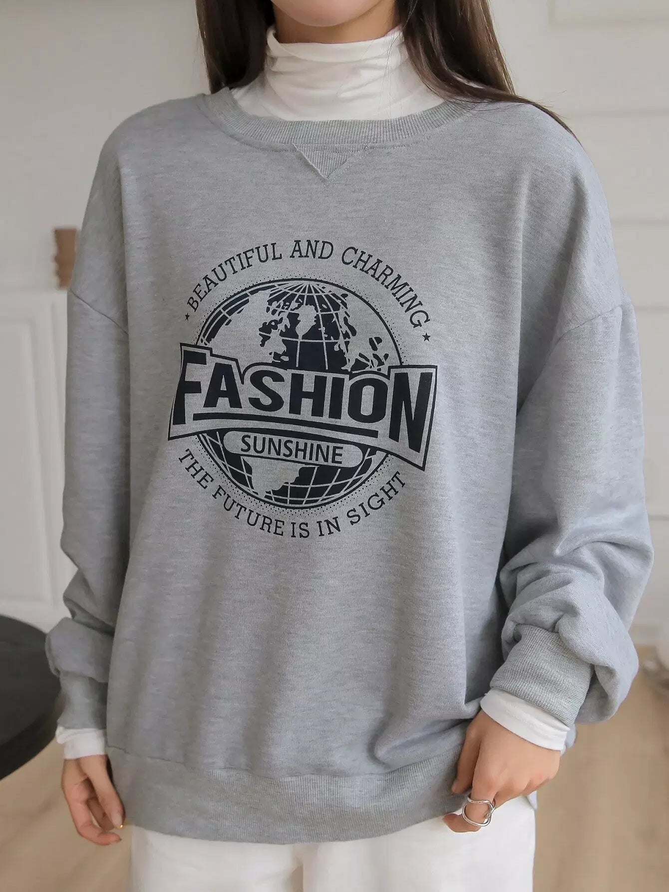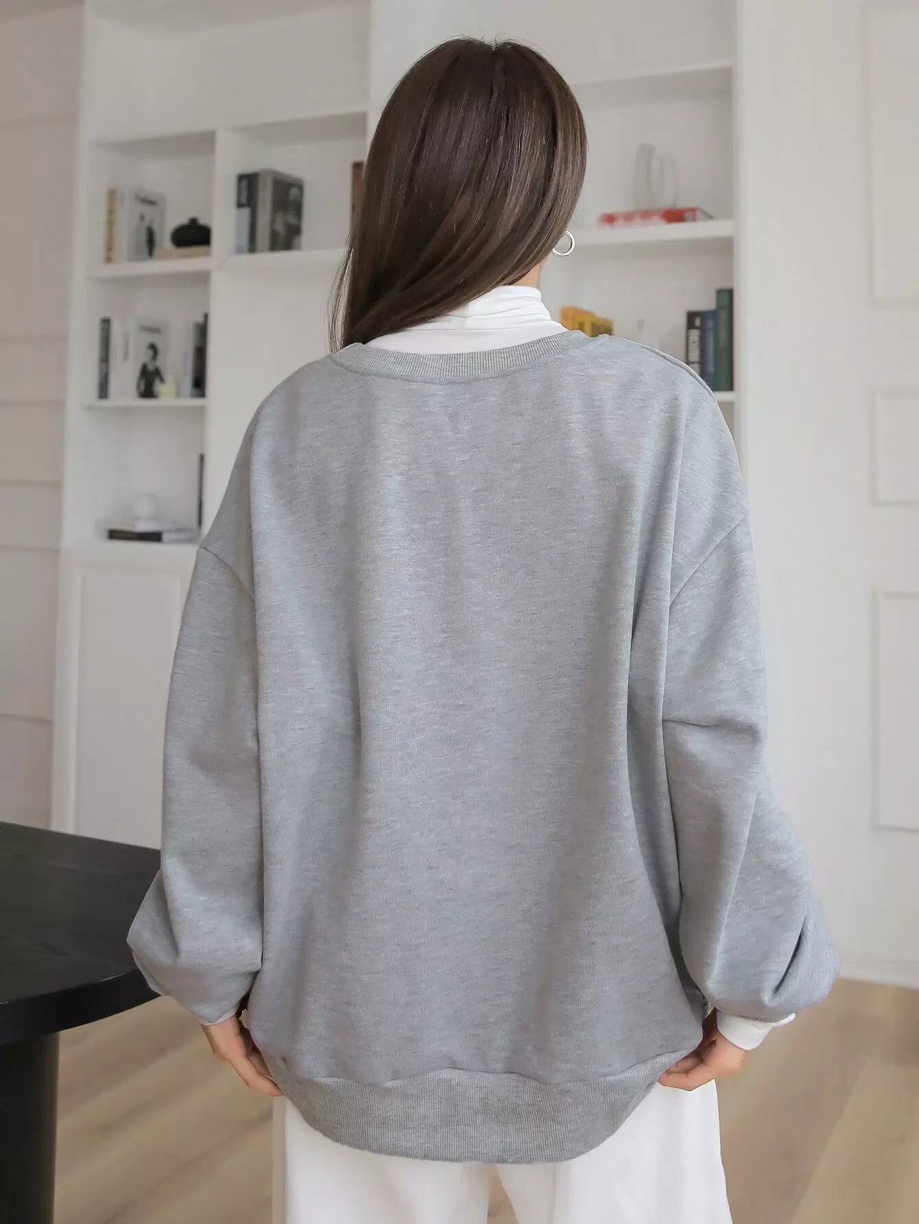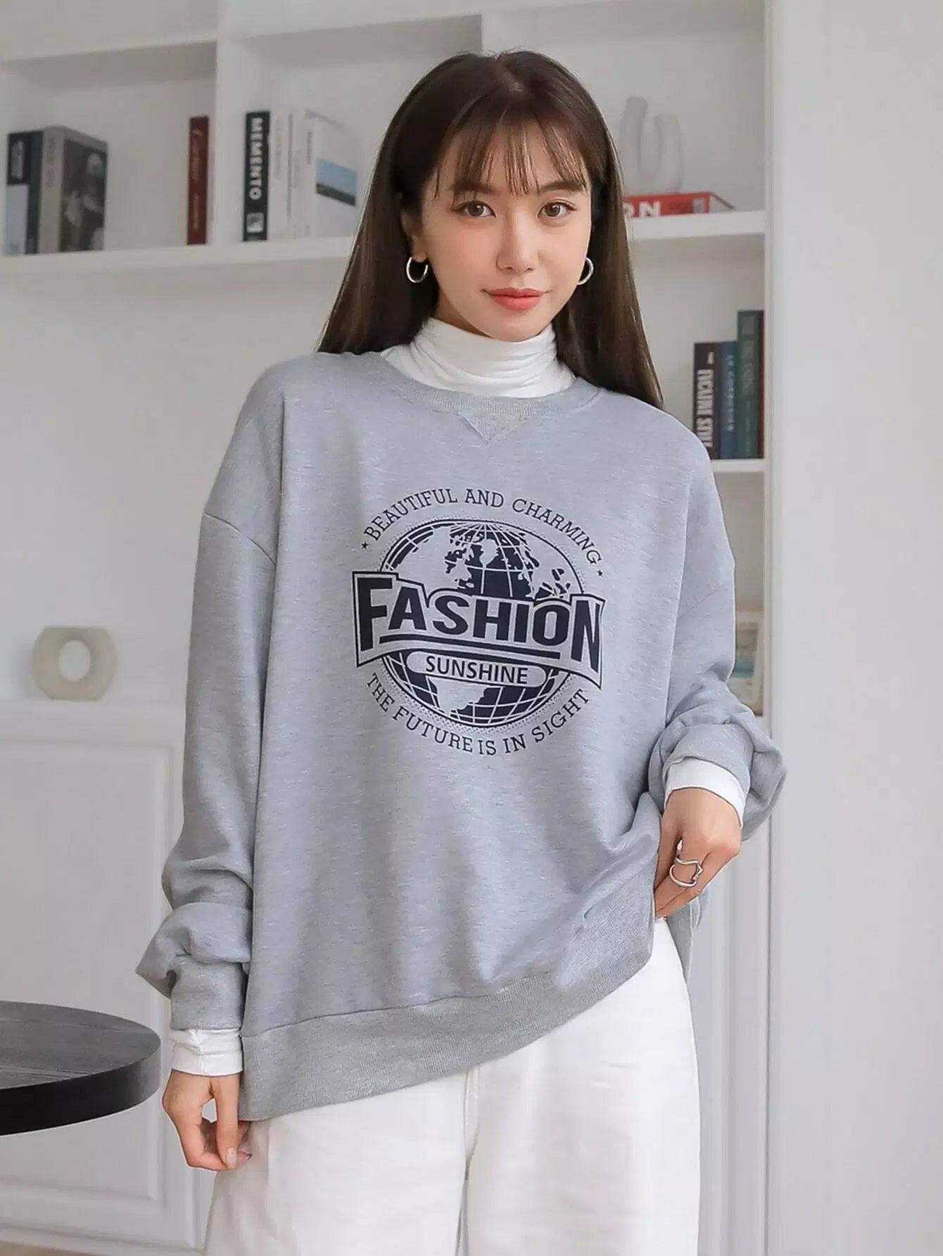 سويت شيرت منسدل الكتف مطبوع عليه شعار