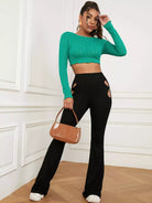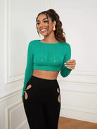 تي شيرت قصير قصير محبوك من نسيج مضلع سادة