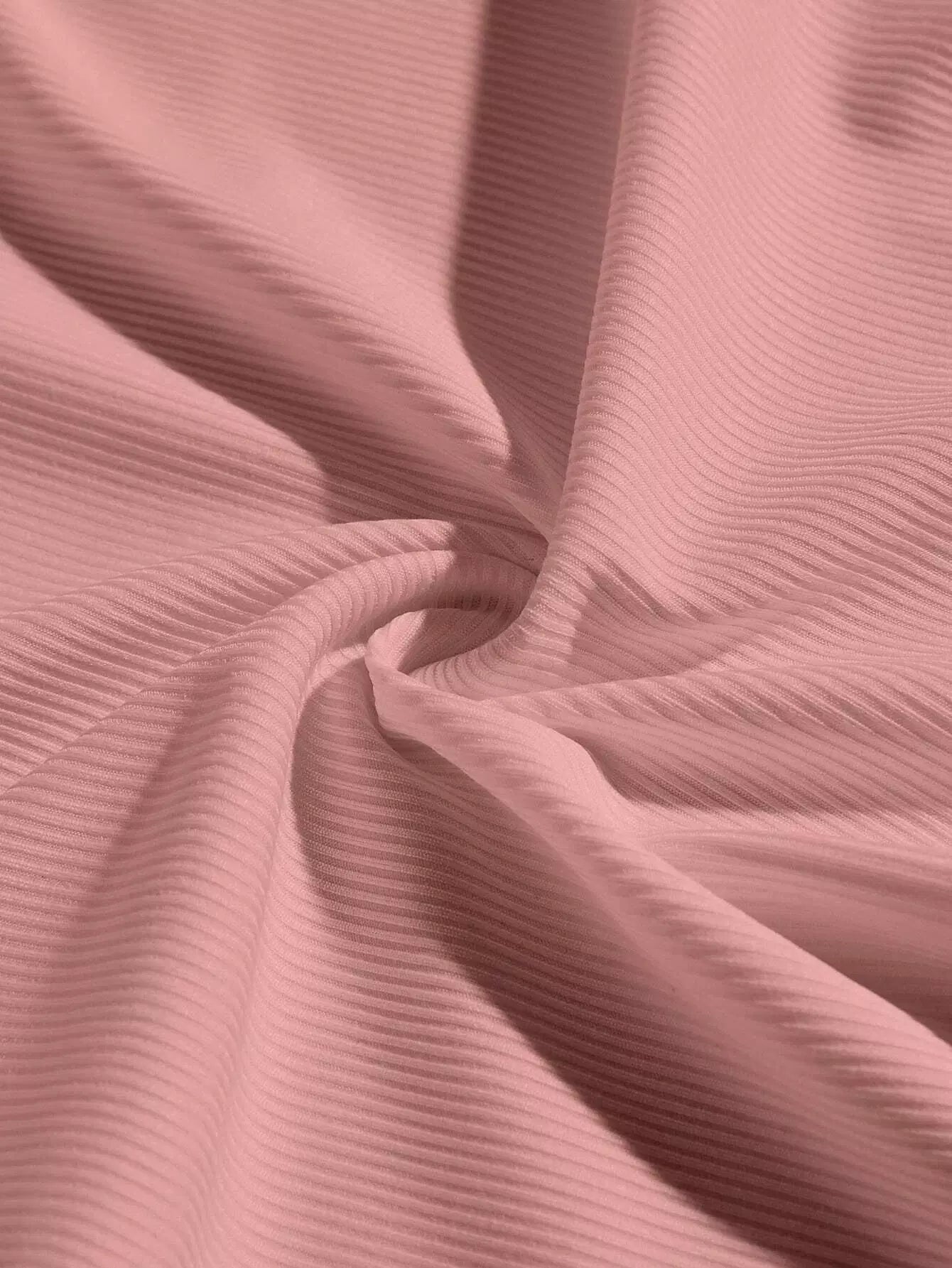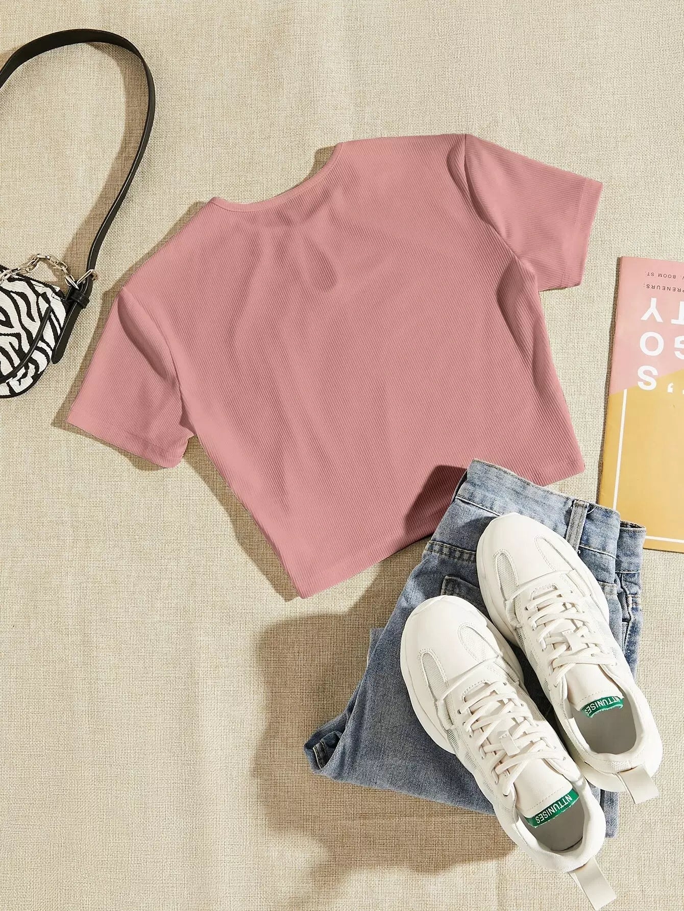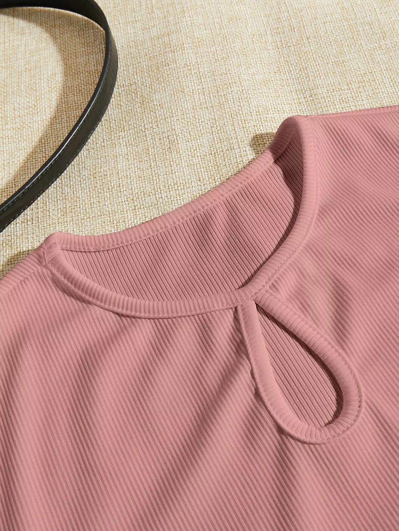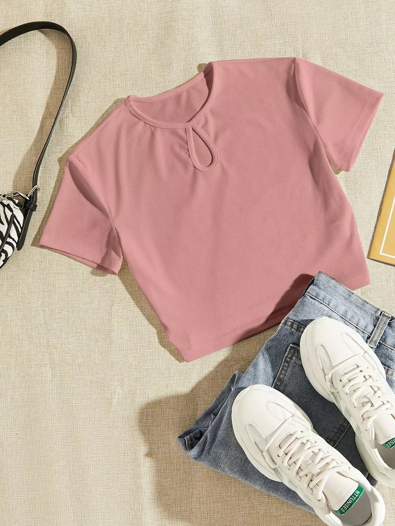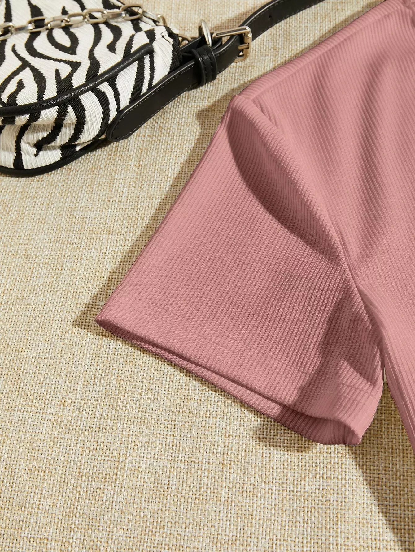 تي شيرت بفتحة رقبة من نسيج مضلع سادة