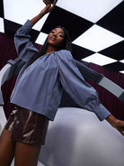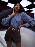 بلوزة سادة بأكمام واسعة وحافة مكشكشة