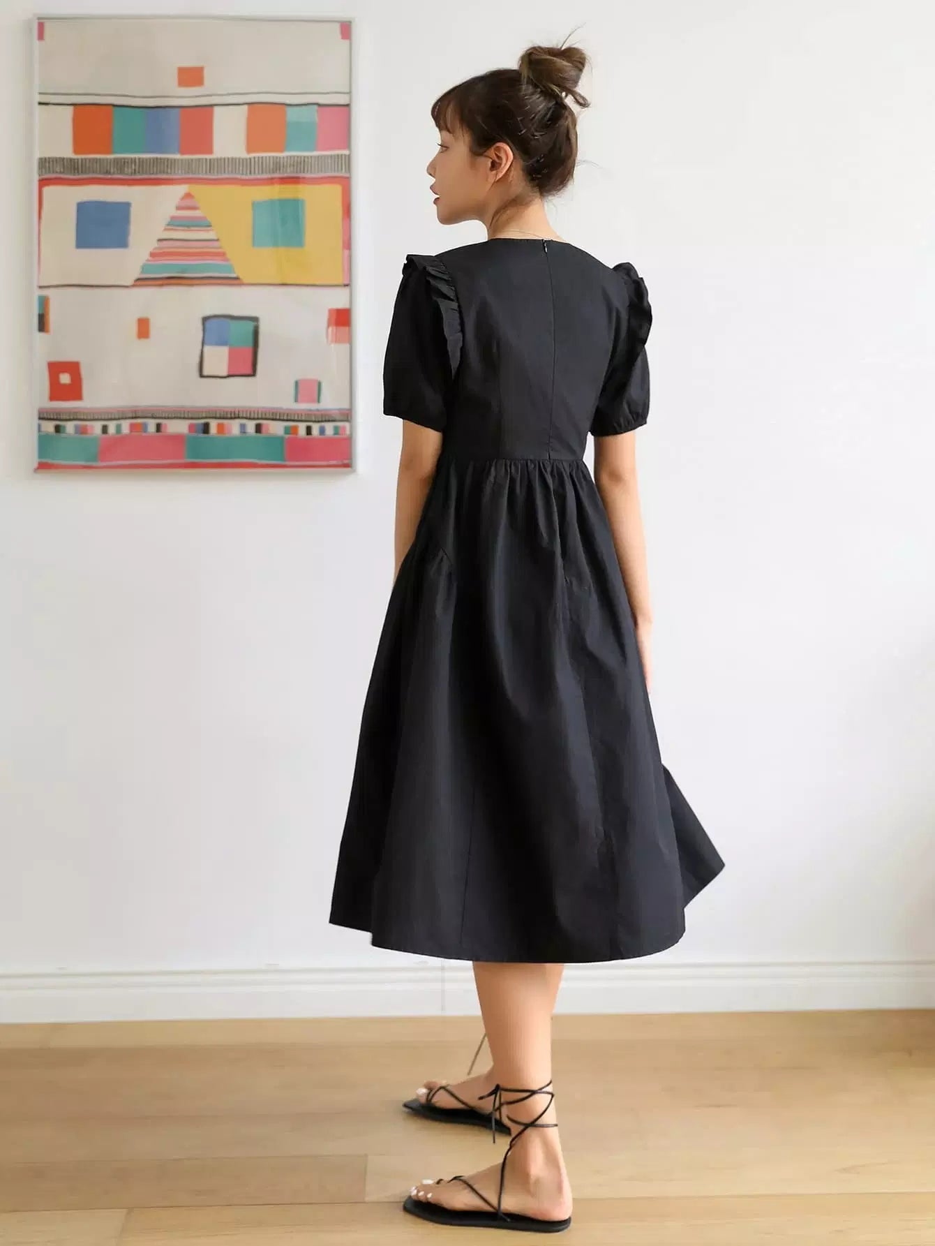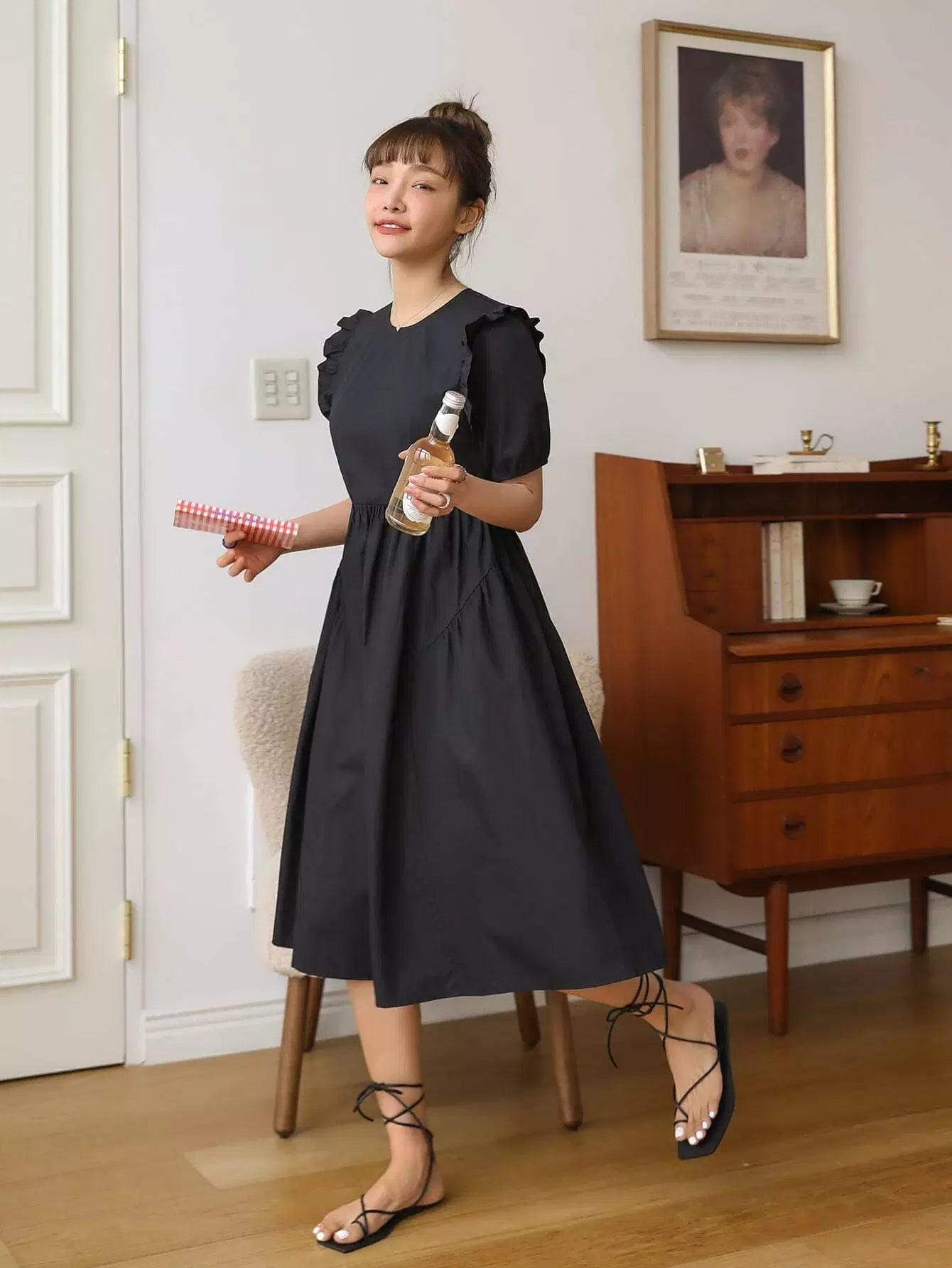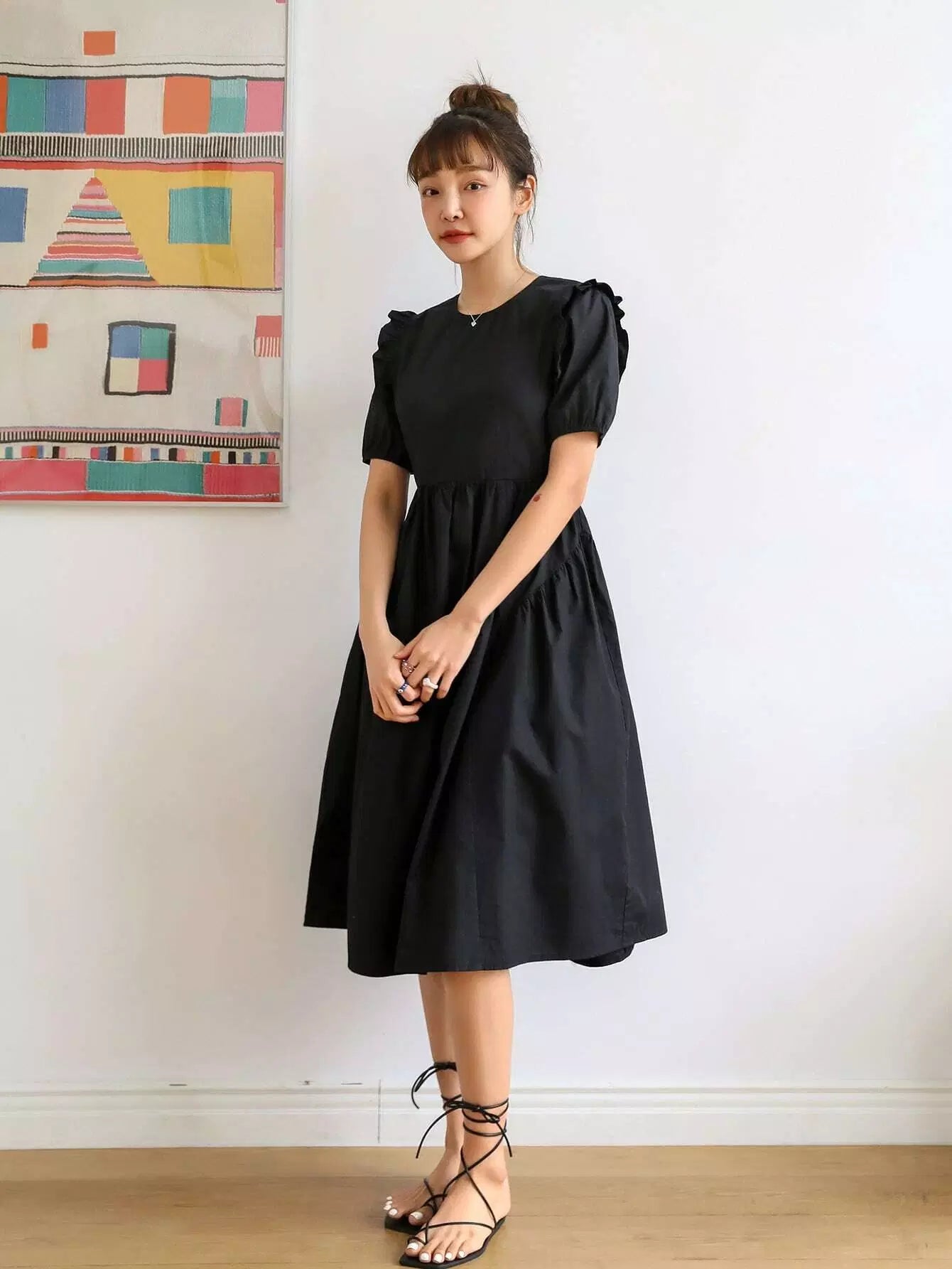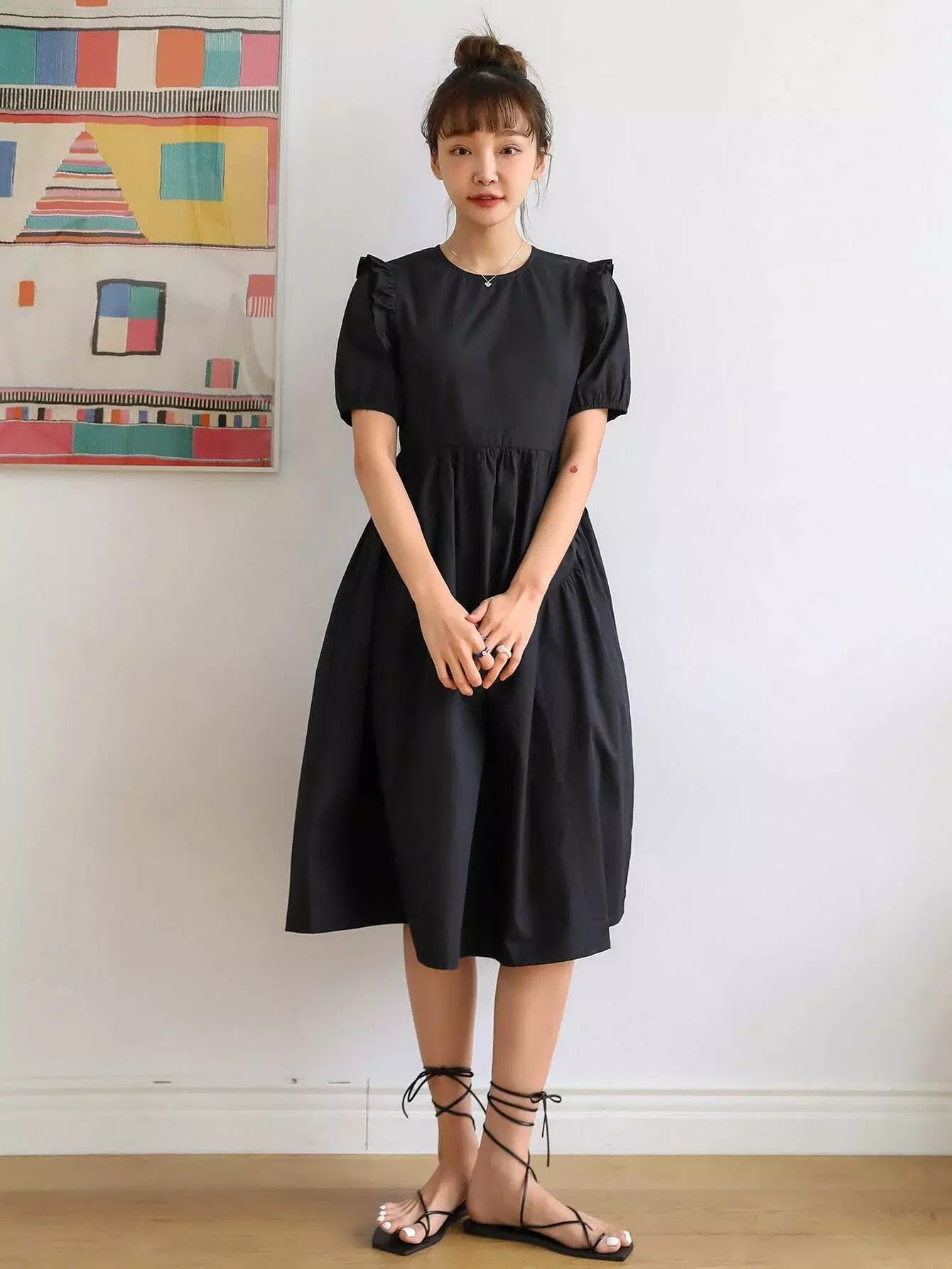 فستان بأكمام كشكش سادة مزين بسحاب من الخلف