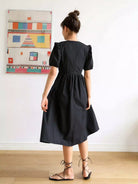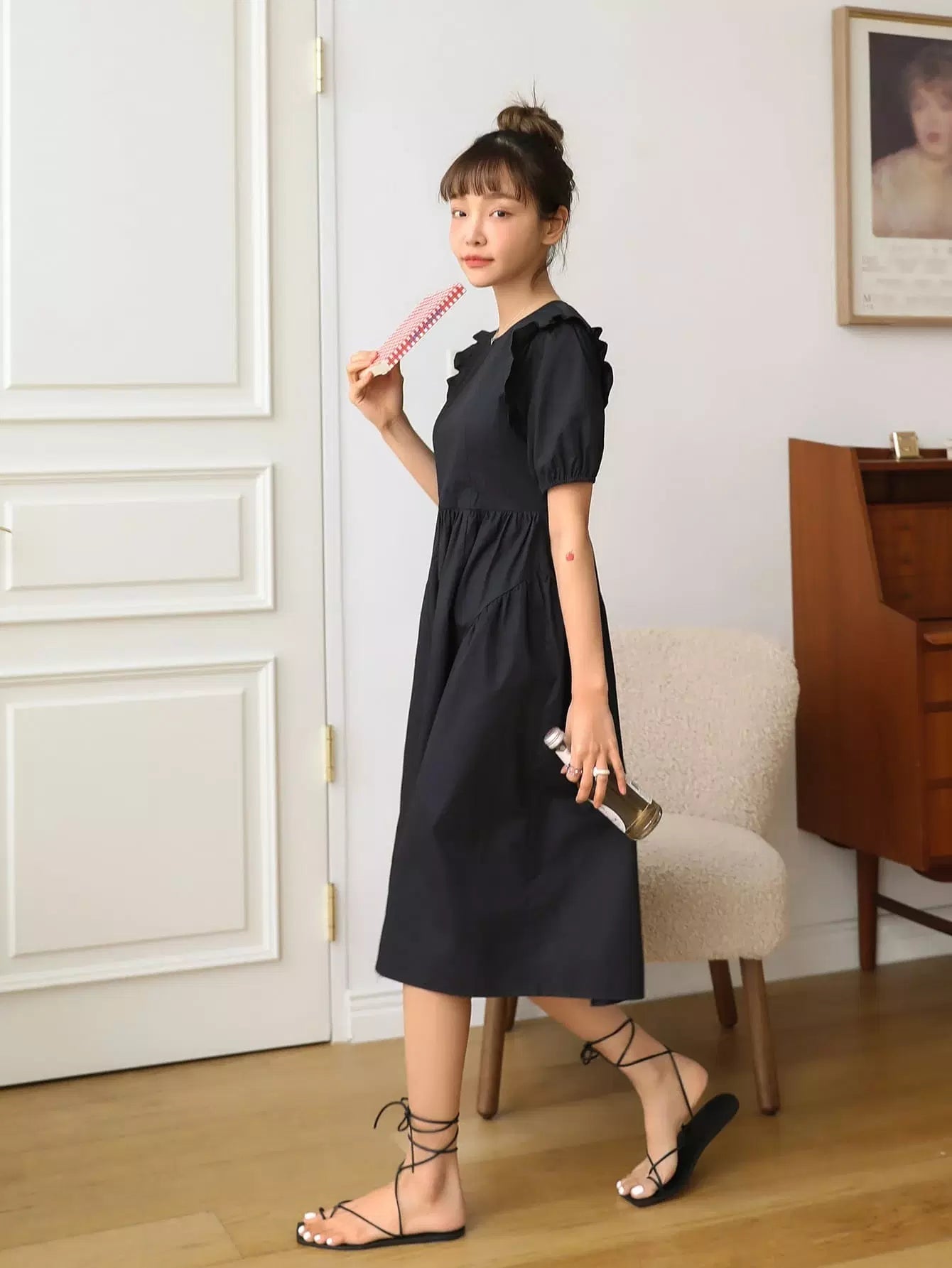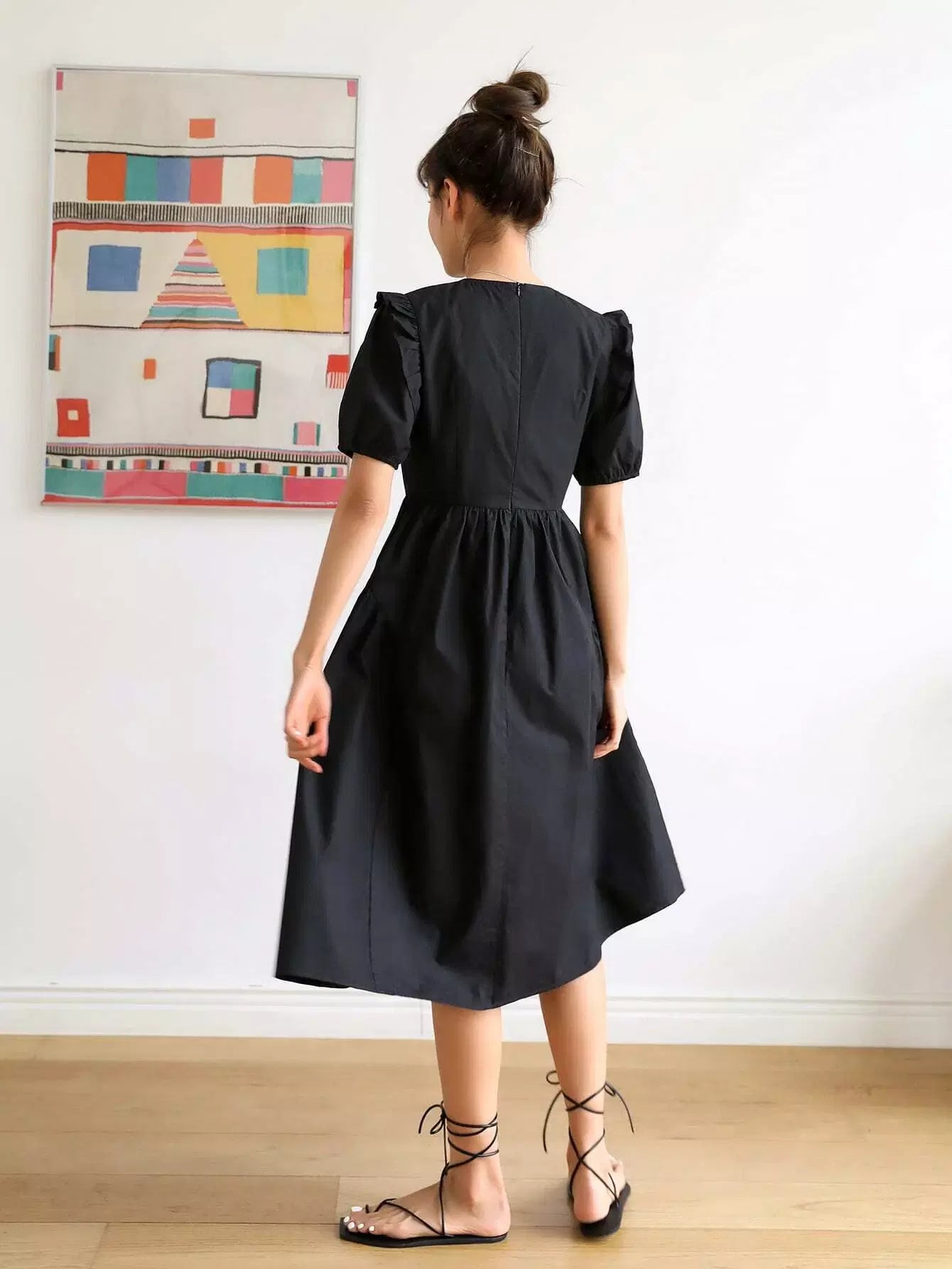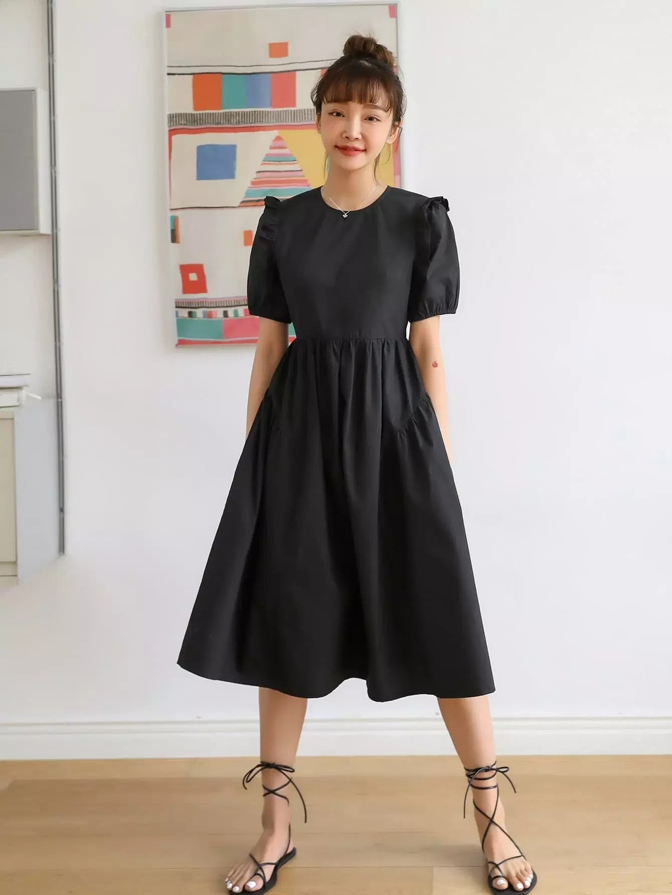 فستان بأكمام كشكش سادة مزين بسحاب من الخلف