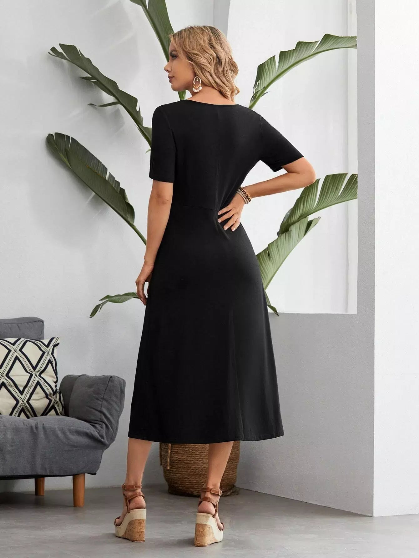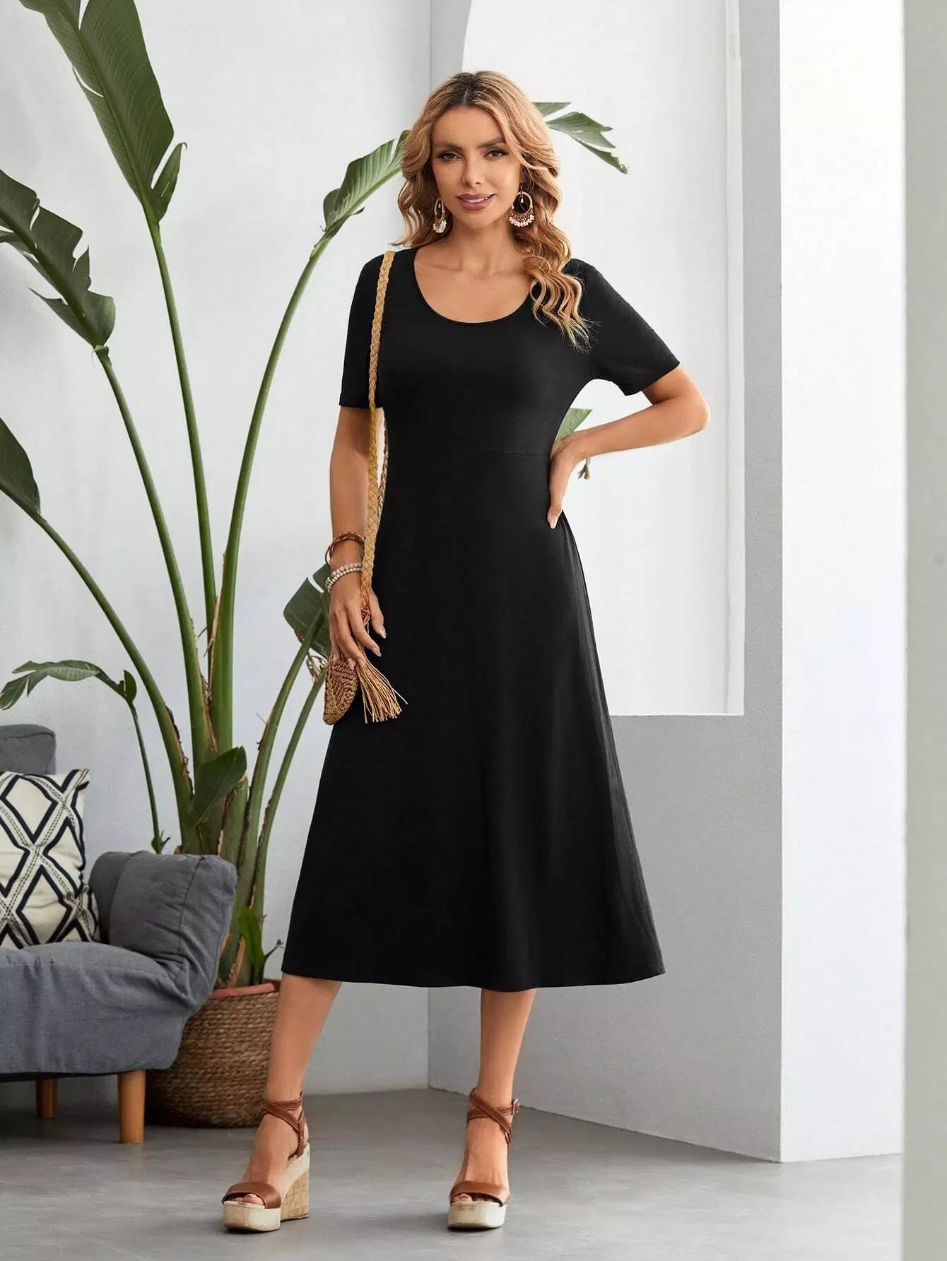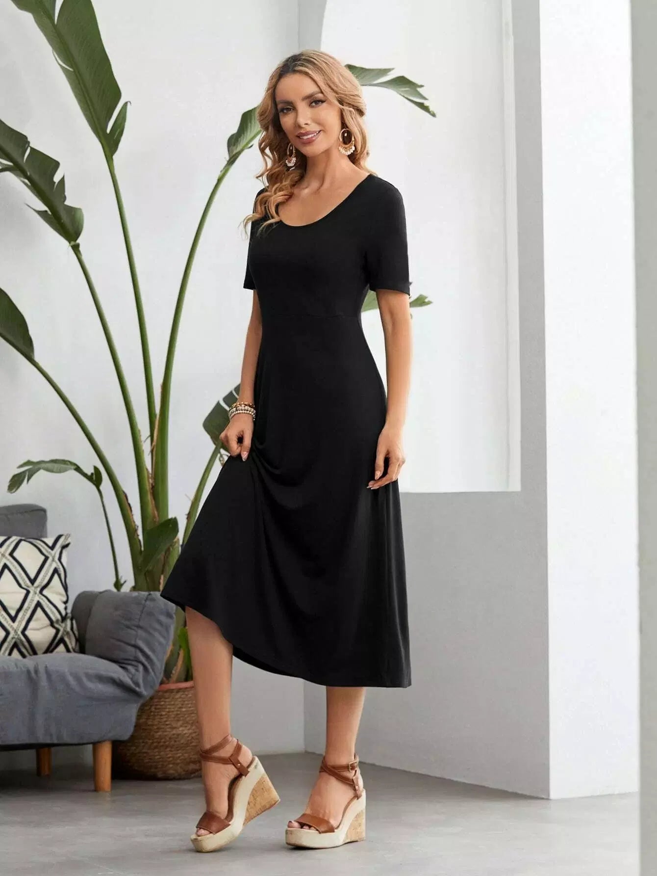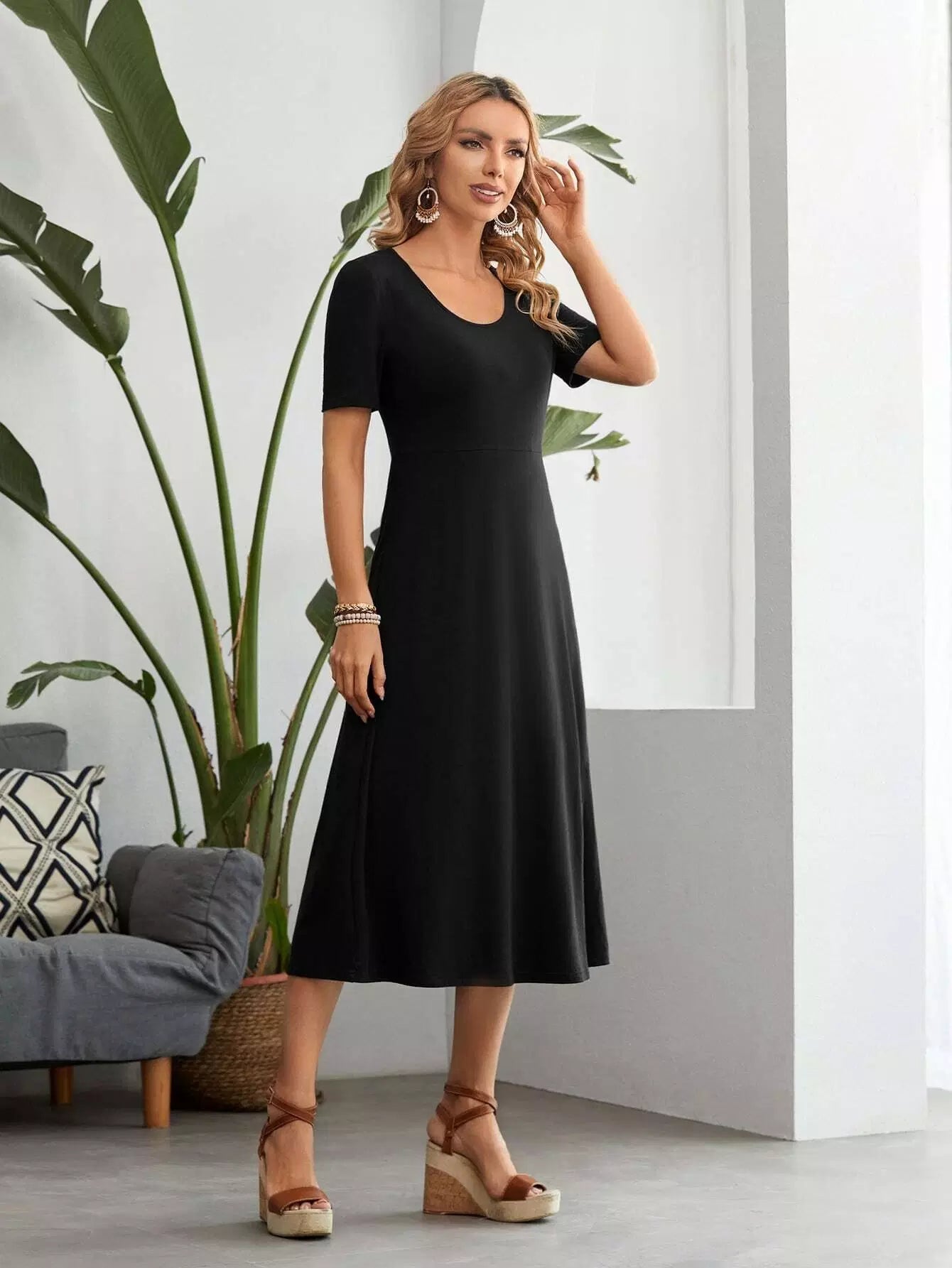 فستان برقبة دائرية سادة