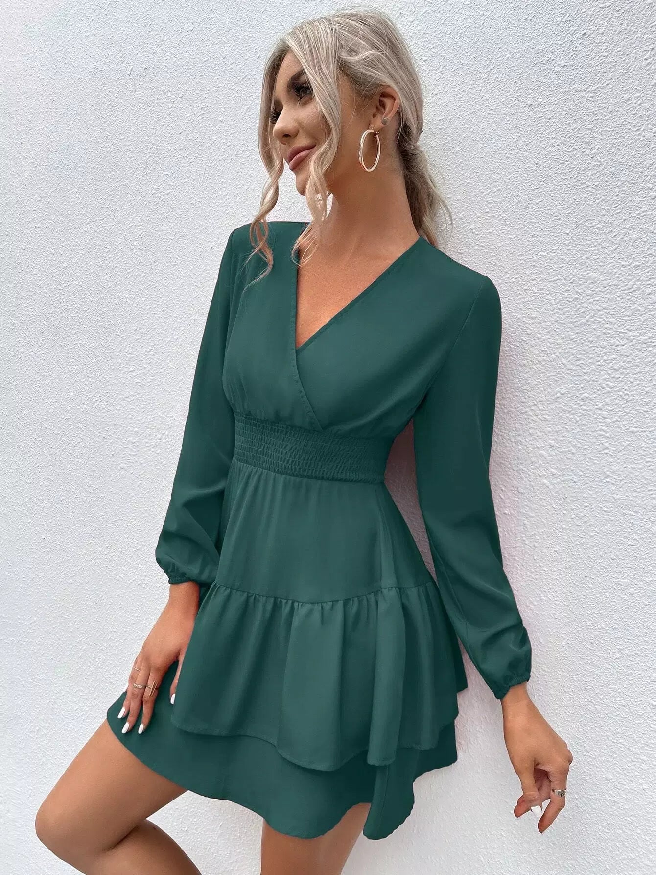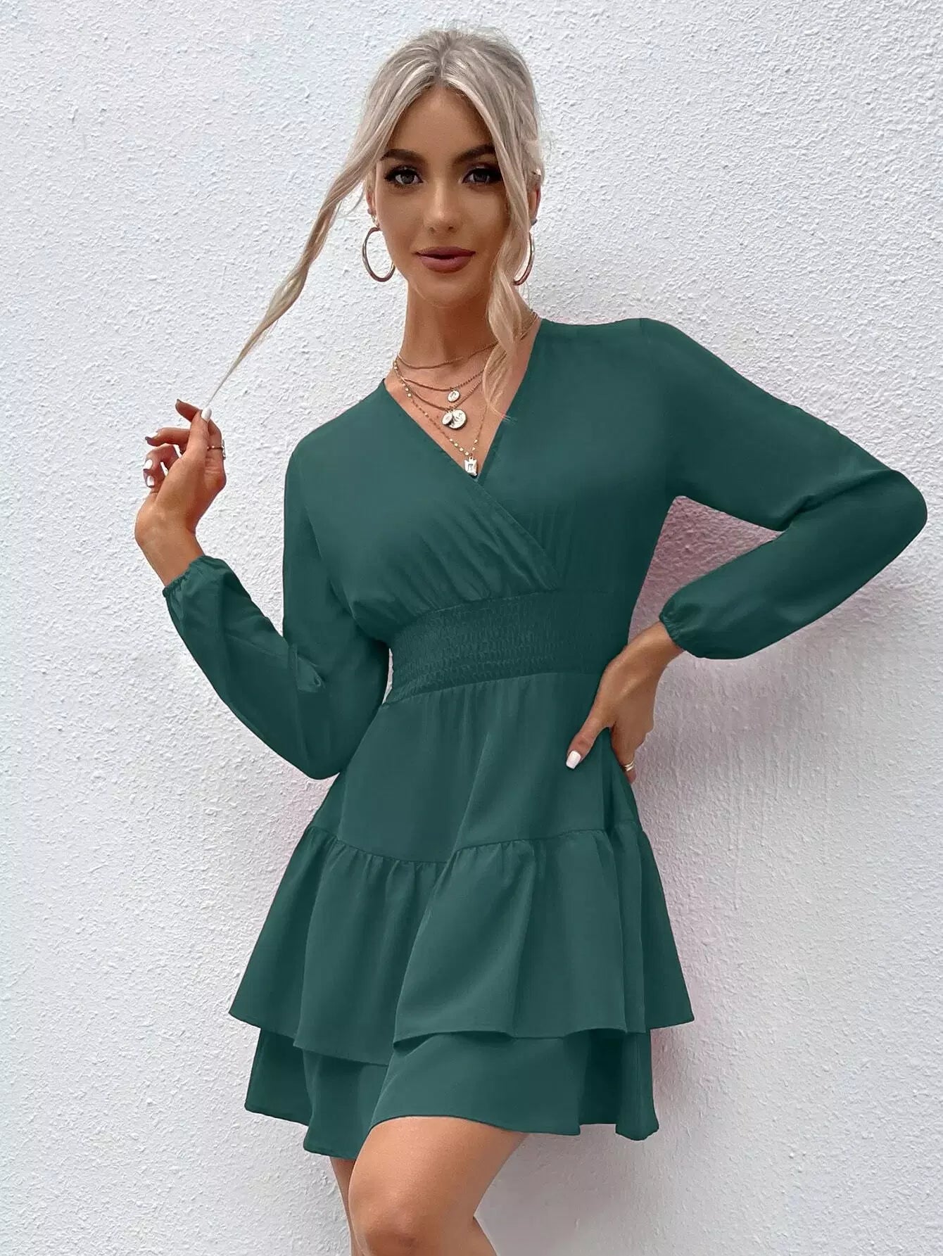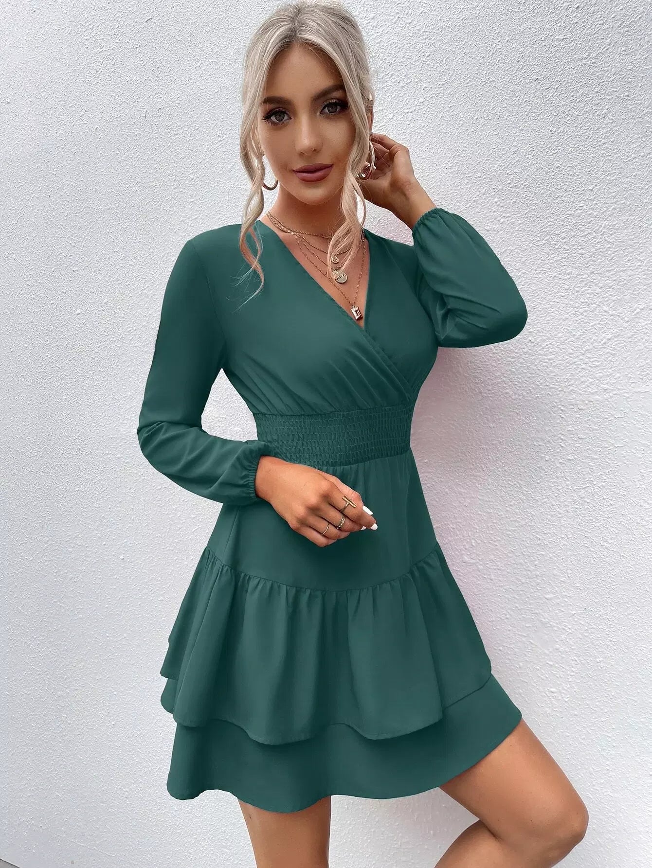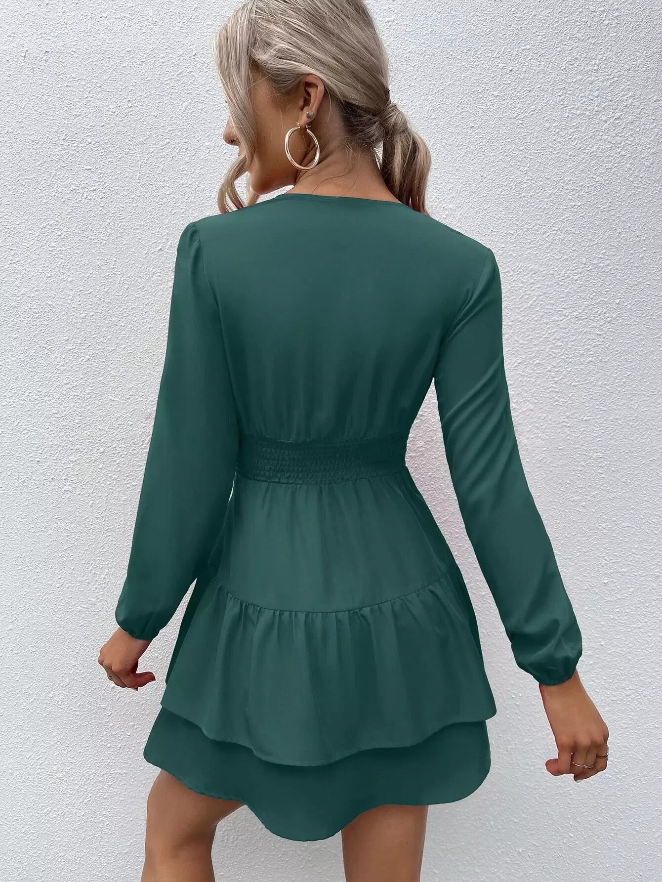 فستان سادة بحاشية ذات طبقات على الخصر شيرد