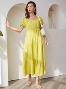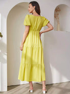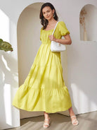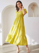 فستان سادة برقبة مربعة مربعة بحافة مكشكشة