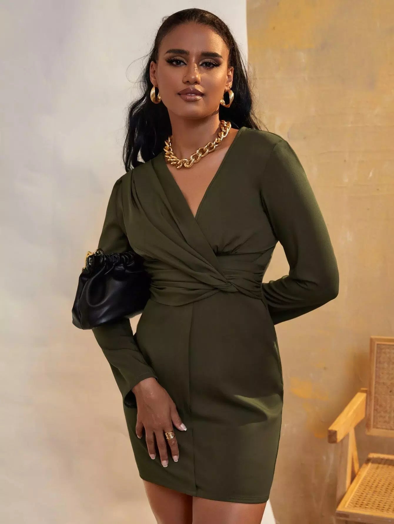 فستان ضيق من الأمام مع ثنيات بسيطة