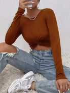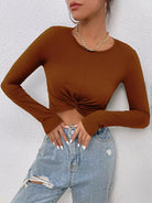 للنساء - تي شيرت قصير أمامي ملتوي سادة