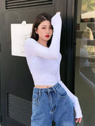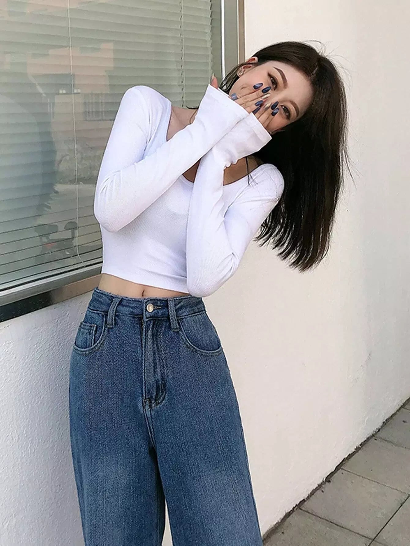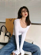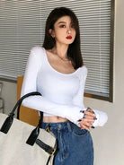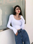 تي شيرت قصير سادة برقبة على شكل حرف U
