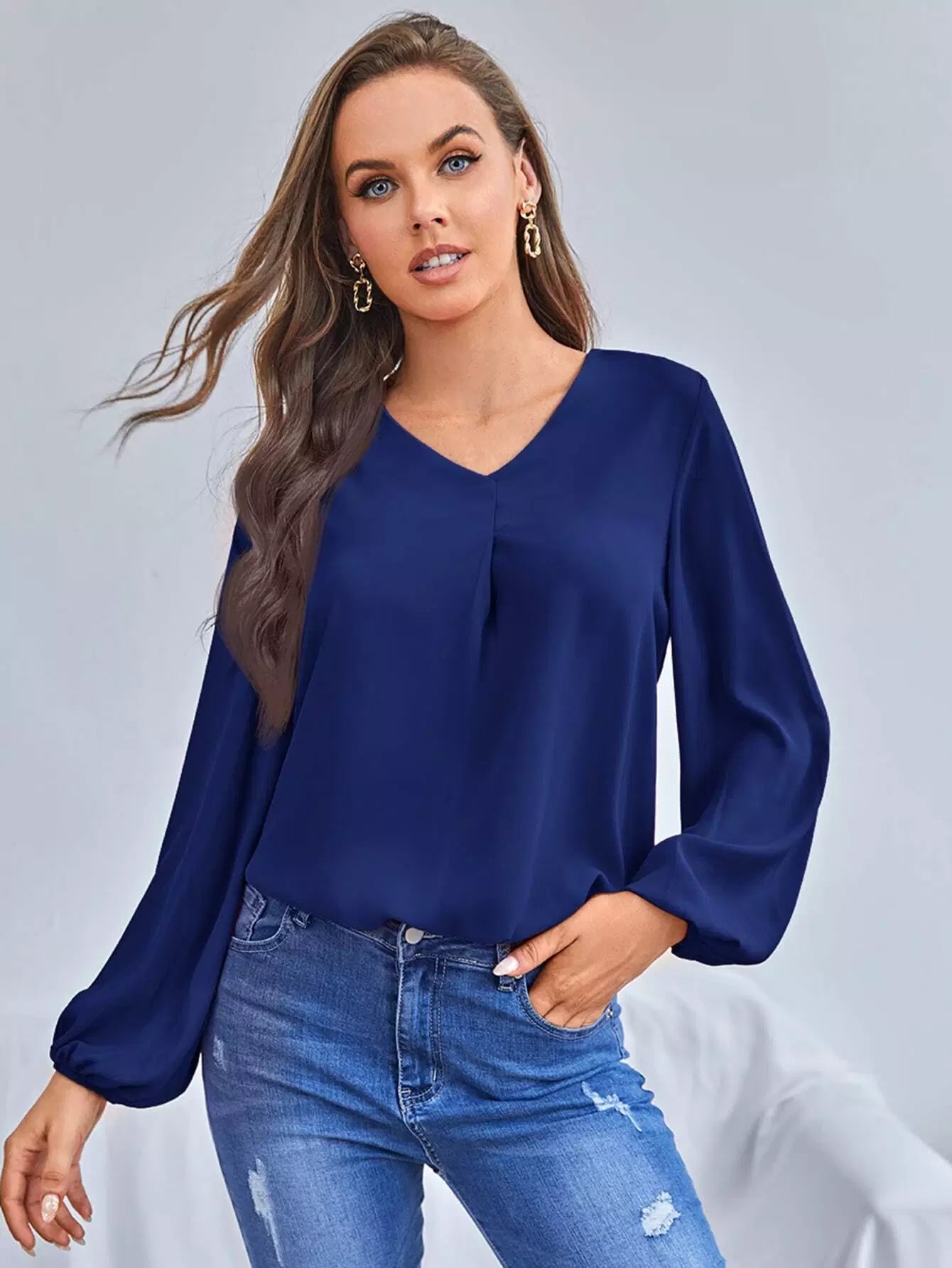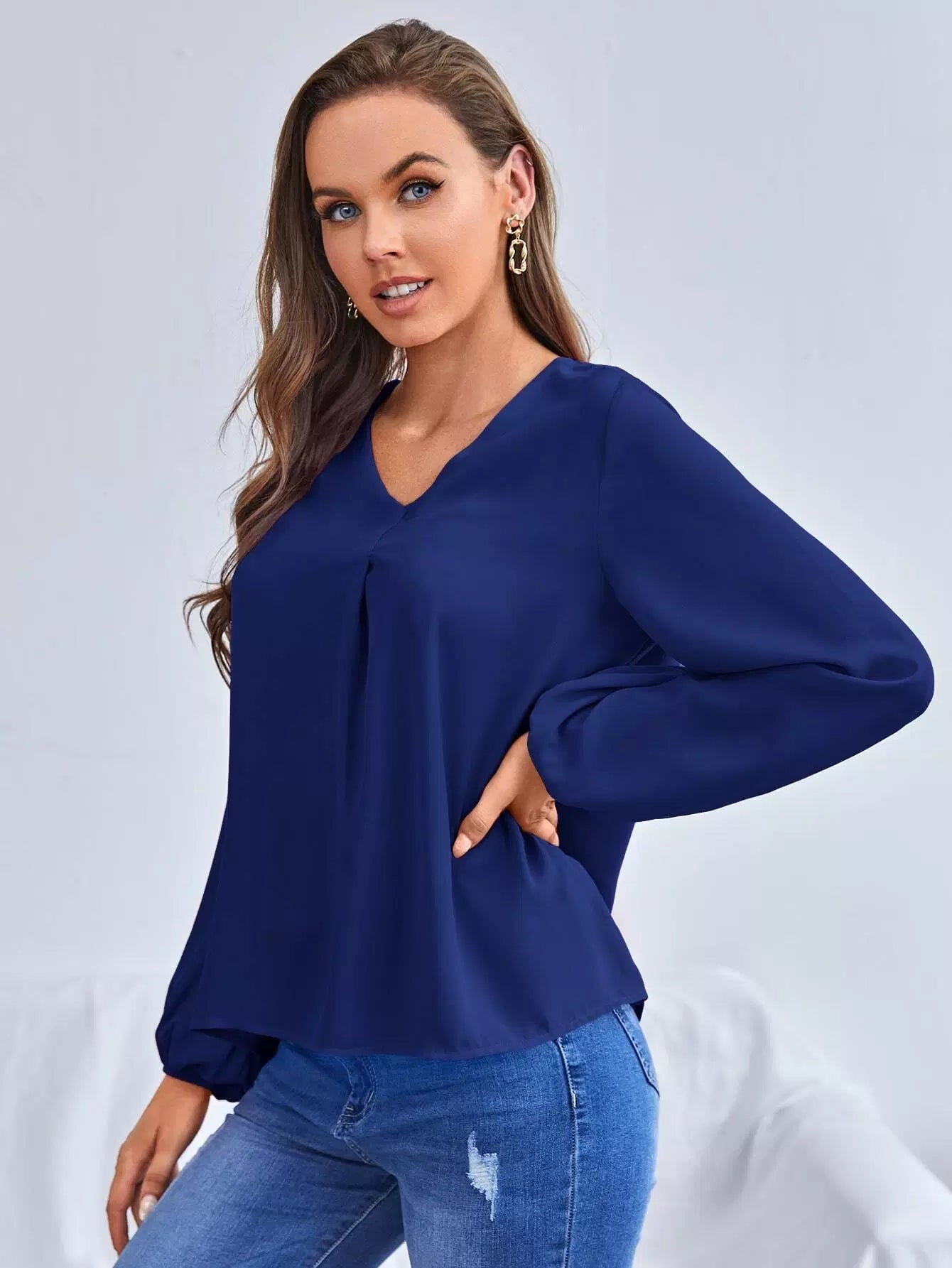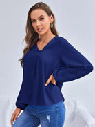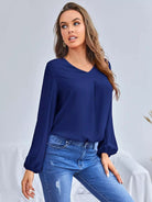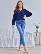 بلوزة سادة برقبة على شكل V