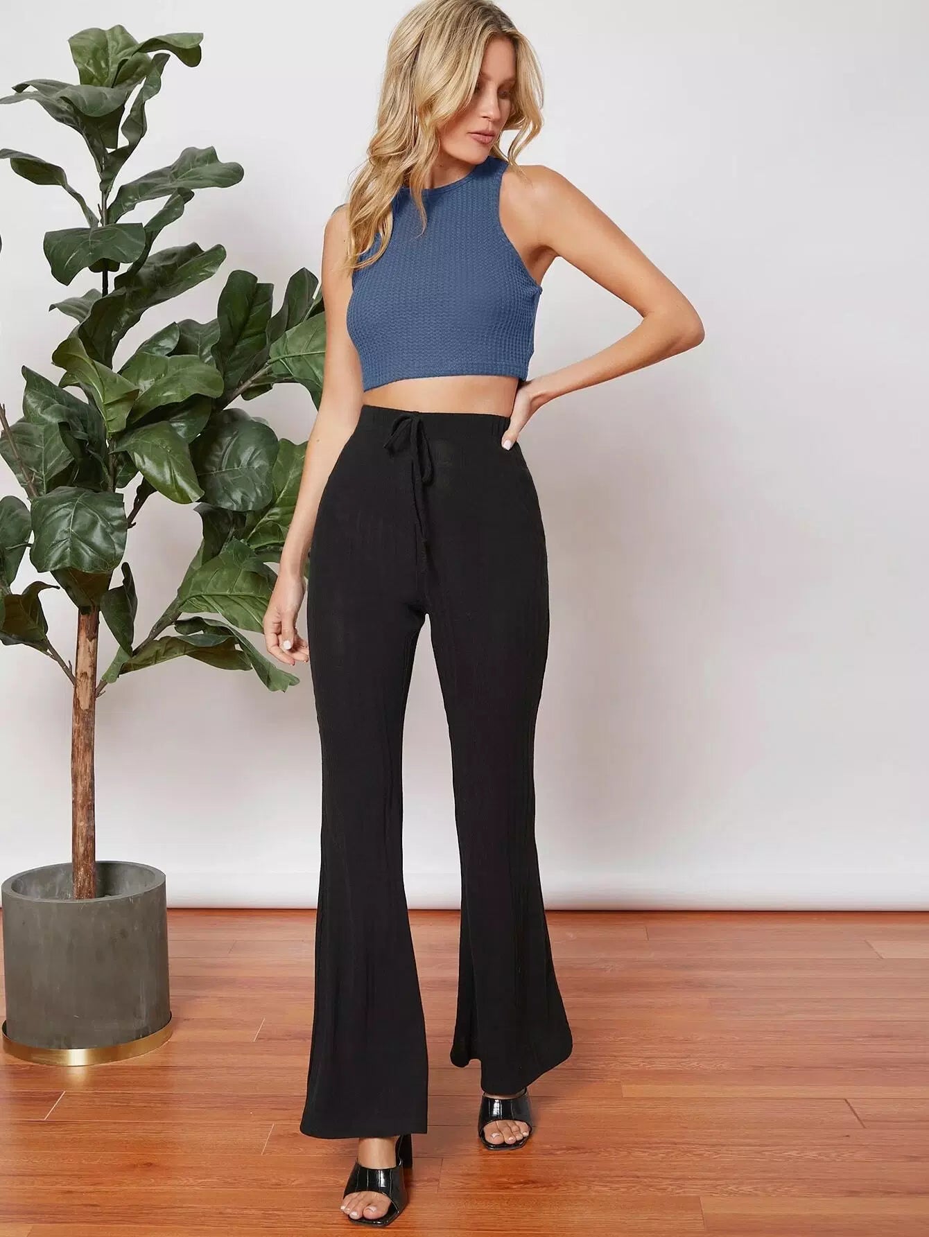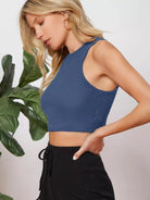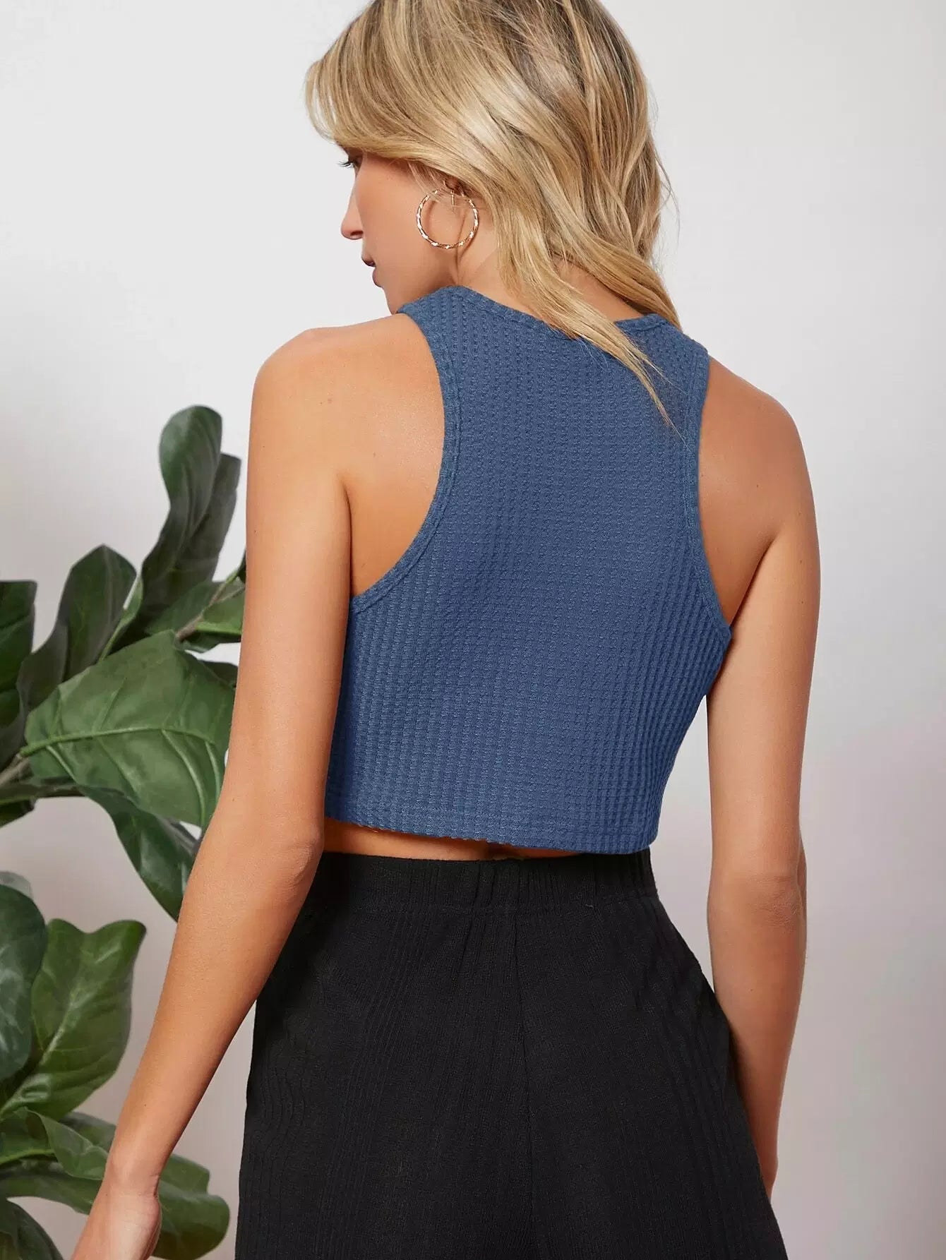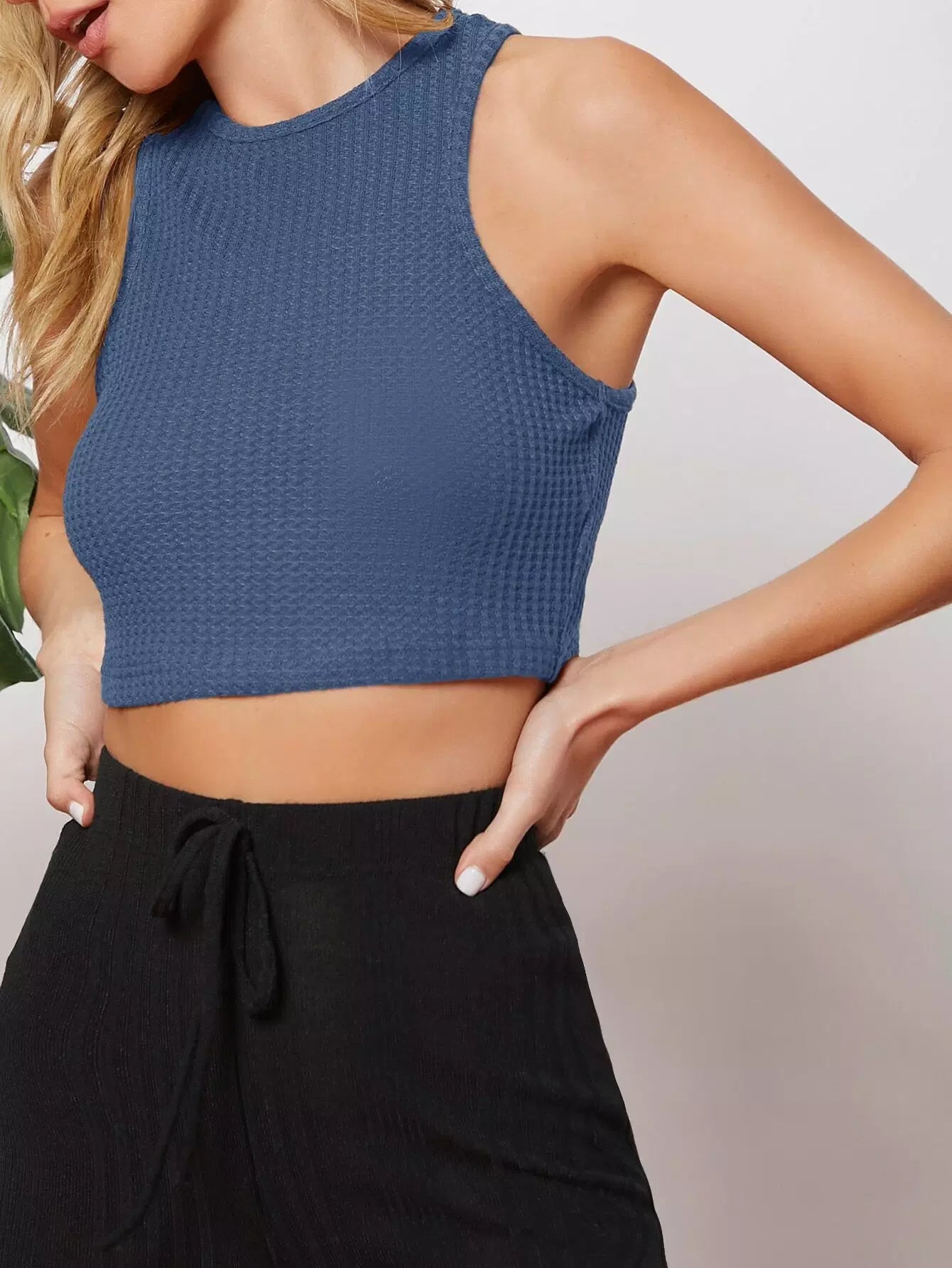 تانك بدون أكمام قصير محبوك من نسيج وافل سادة
