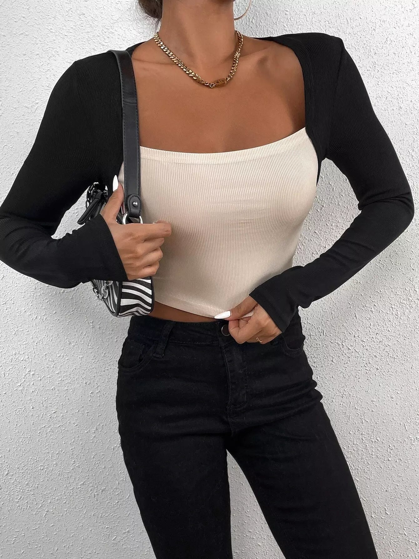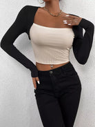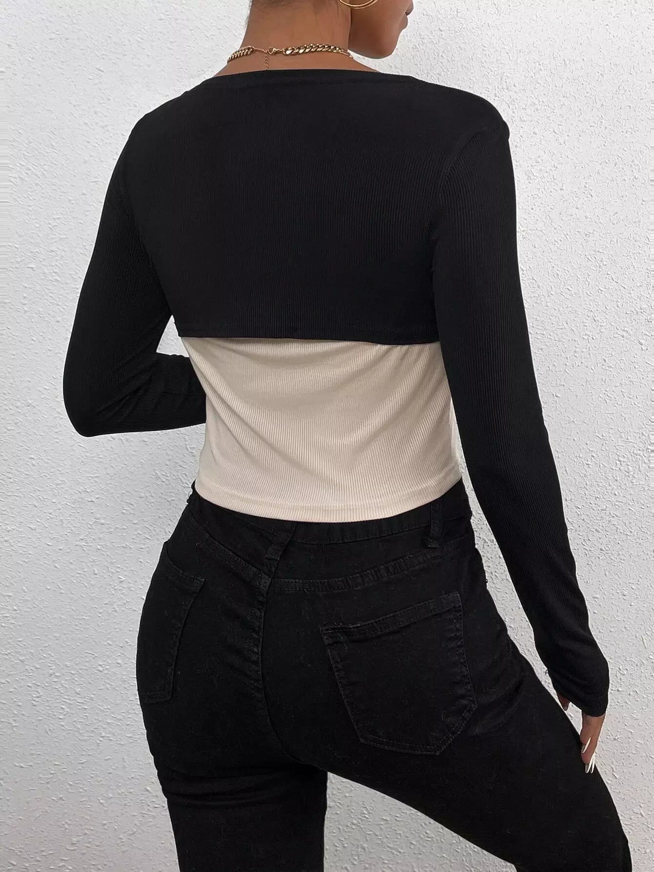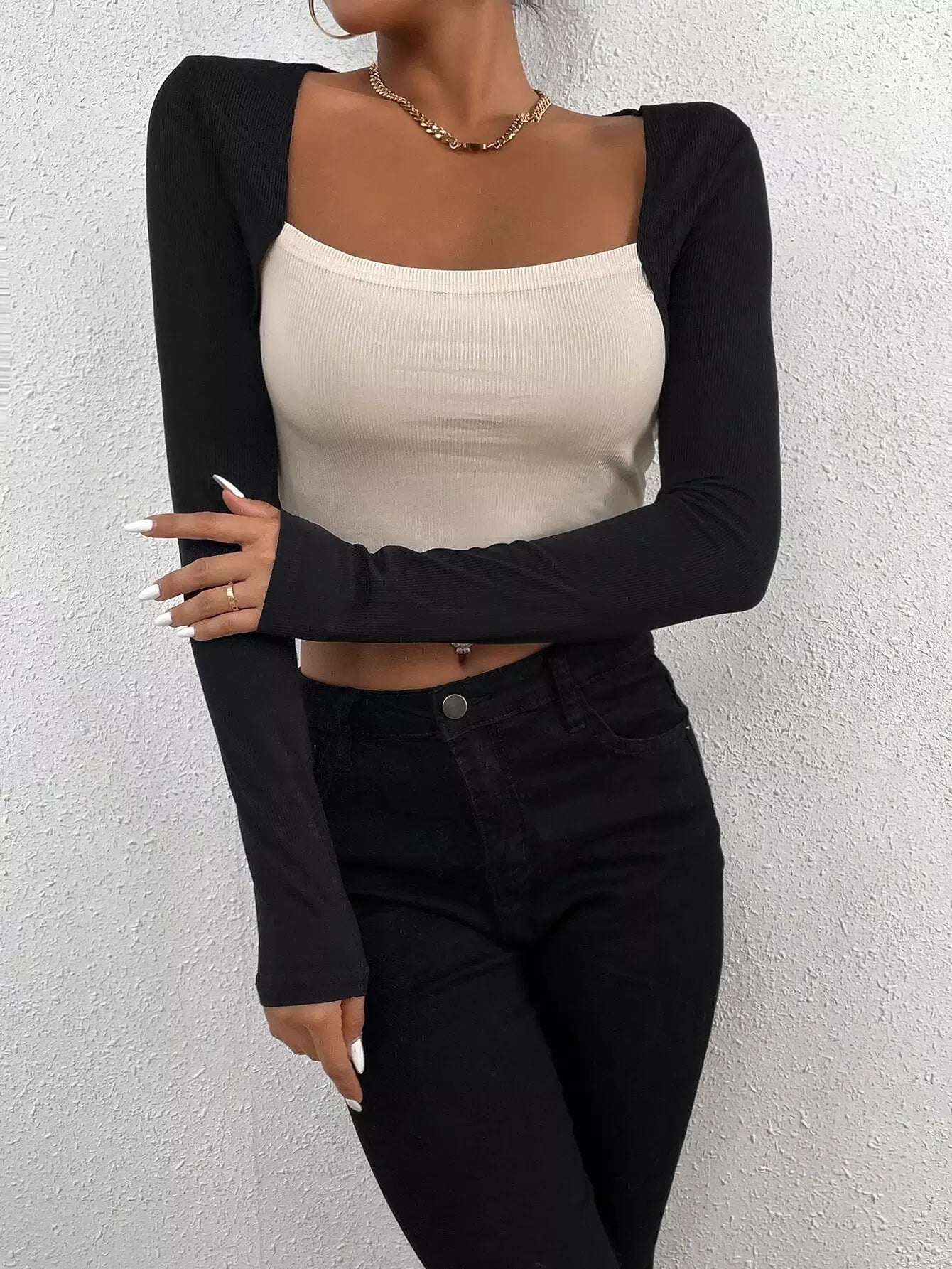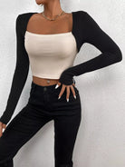 تي شيرت برقبة مربعة بطبعة ملونة على شكل مربع