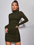 فستان ضيق من قماش الضلع مع ياقة قائمة وحافة مكشكشة